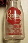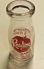 Very Scarce Bottle Pyro Half Pint Milk Bottle Reading Dairy Reading, Pa. (Berks County) Back reads: Keep'em Flying Buy a Bond Today Army Fliers Drink Milk case wear; chip on bottom front Ships to US only.