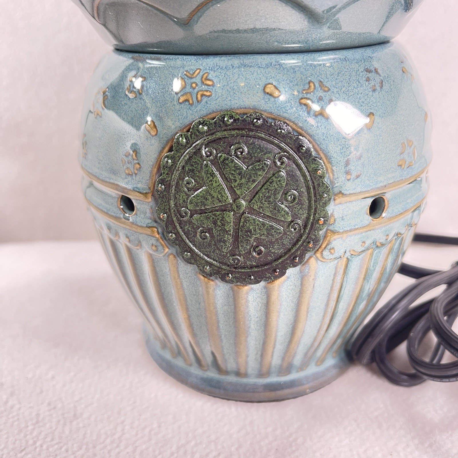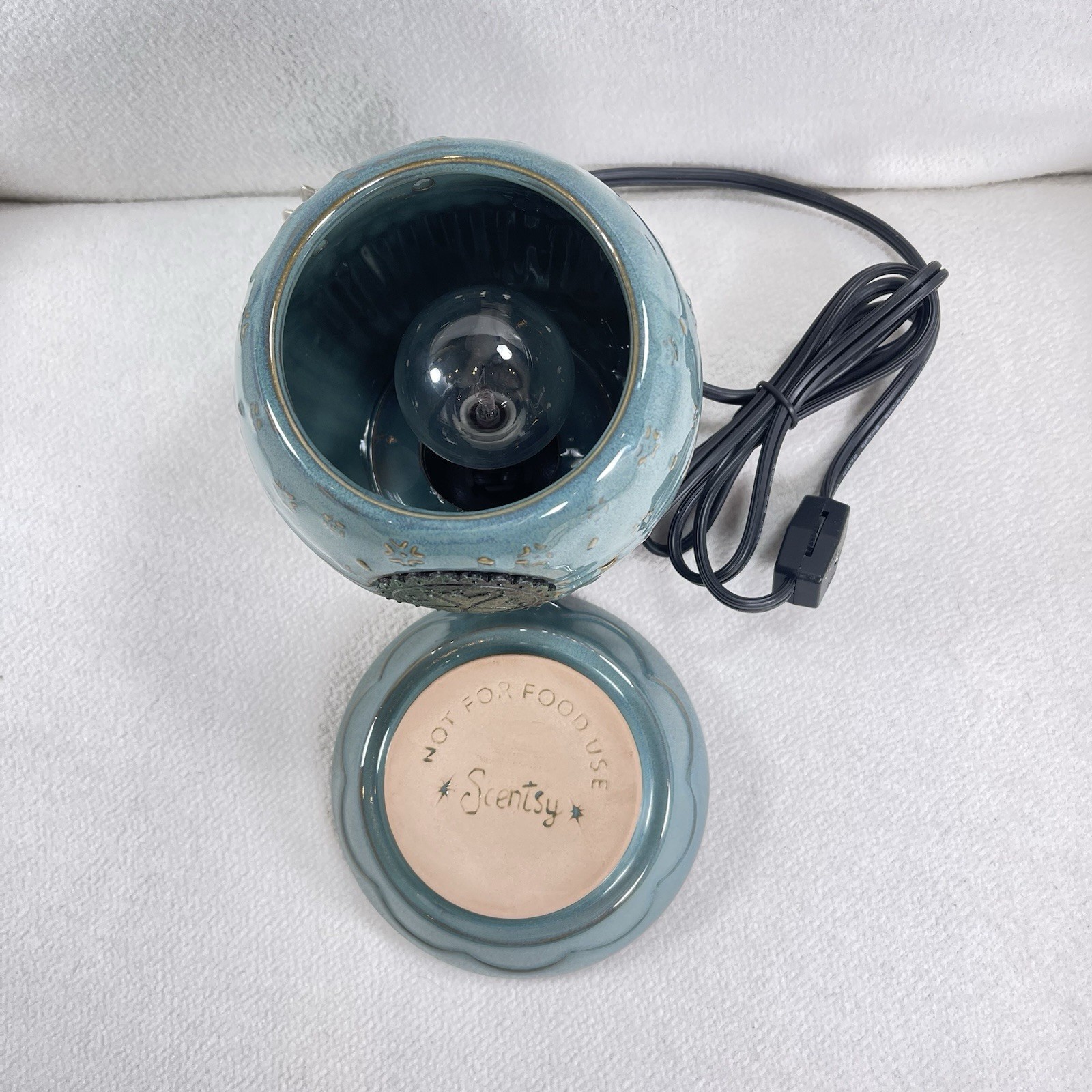 Scentsy VICTORIA Wax Warmer Burner Full Size Teal Blue with Flower Seal RETIRED. Condition is Used. Shipped with USPS Ground Advantage.