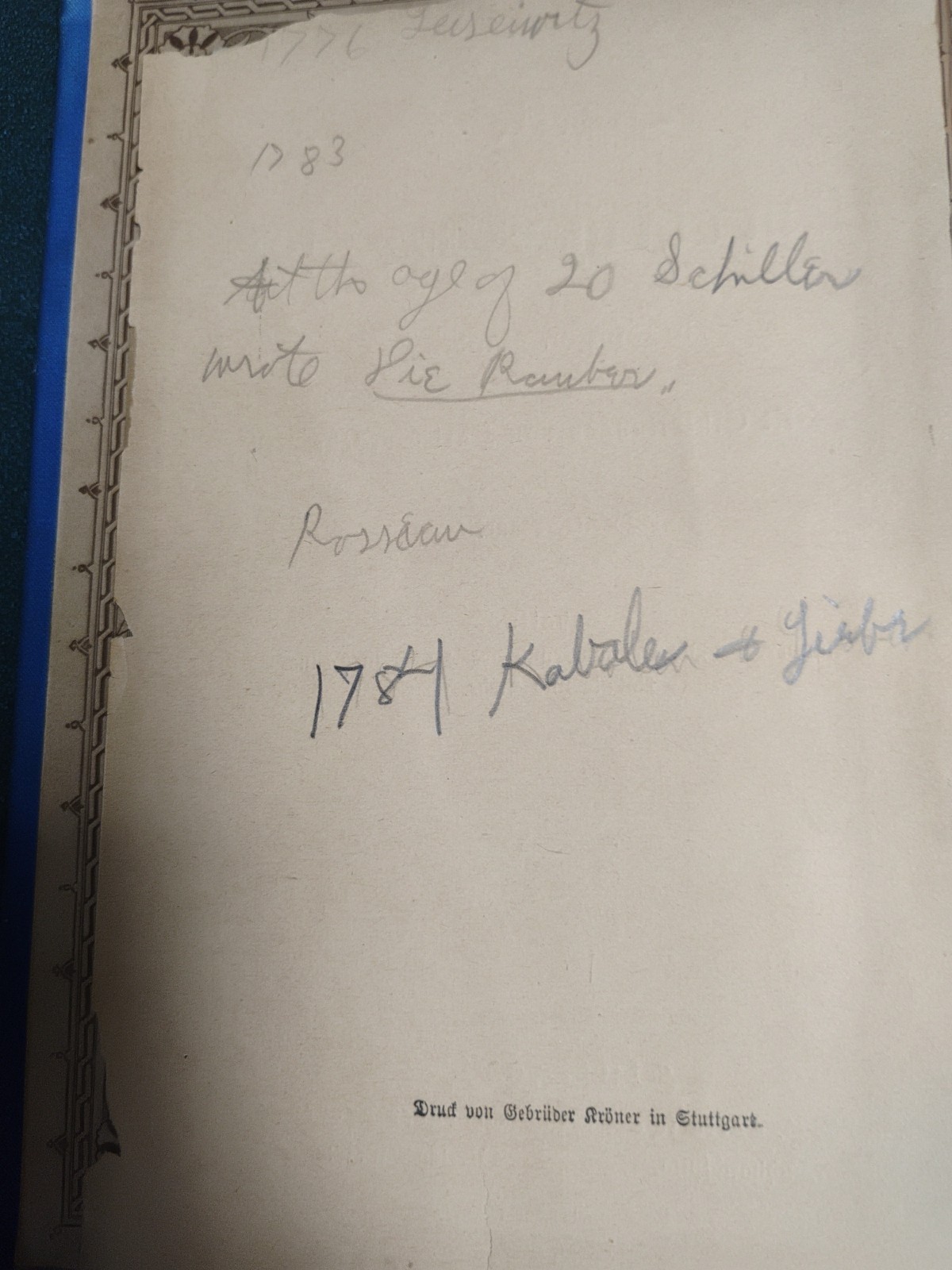 This vintage hardcover book titled "Schillers Famtliche Werke: Die Rauber, Fiesco, Kabale und Liebe" or ''Schrillers Complete Works: The Robbers, Fiesco, Intrique and Love'' by Schiller. Written in German this book falls under the genre of fiction and is a collection of works by Schiller that includes famous titles such as "Die Rauber," "Fiesco," and "Kabale und Liebe." A valuable addition to any book collection, this vintage hardcover edition offers readers a timeless literary experience in the original language. Schillers Famtliche Werke: Die Rauber, Fiesco, Kabale und Liebe VTG Hardcover This book is in acceptable shape for its age. There are loose pages and other signs of wear in this old book with an unknown date. See the photos for more.