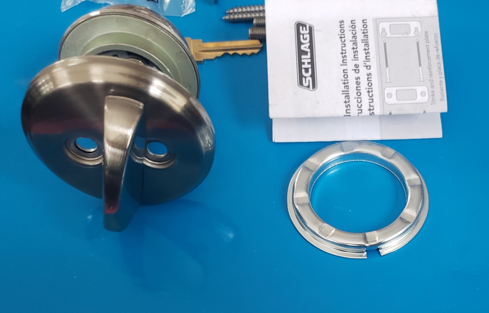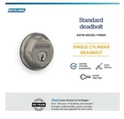 FAST SHIPPING! IDEAL USE: Deadbolt thrown or retracted by key from outside or by inside turn unit; perfect for use on entry doors with 2 bore holes as additional layer of security; includes lockset and 2 keys ADVANCED SECURITY FEATURES: Ideal for front doors and exterior entrances where security and style are needed; includes industry-leading 1-inch deadbolt with hardened steel spinning pin, anti-drill plates and anti-pick pins to help protect against attacks CERTIFIED HIGHEST SECURITY: Premium metal construction and quality craftsmanship for everyday strength and peace of mind; Grade 1/AAA certified BHMA rating for Security, Durability and Finish EASY INSTALLATION: Self-aligning screw holes make installation hassle-free; everything included to upgrade existing double bore hole doors, such as exterior doors with keyed security, yourself with only a screwdriver; fits right and left handed doors HASSLE-FREE FIT: Universal latch slides easily into place without tools to fit standard doors with 2-3/8 in or 2-3/4 in backset; fits door thickness 1-3/8 in to 1-7/8 in; includes strike reinforcer with 3 in screws to help protect against kick-in attacks