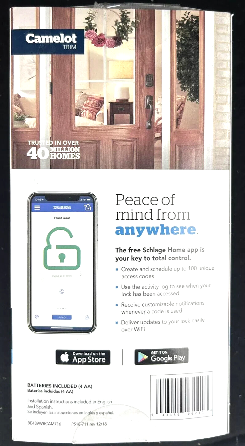Schlage BE489WBCAM716 Encode Smart WiFi Deadbolt - Aged Bronze -BRAND NEW On Apr 4, 2025 at 23:43:52 PDT, seller added the following information: