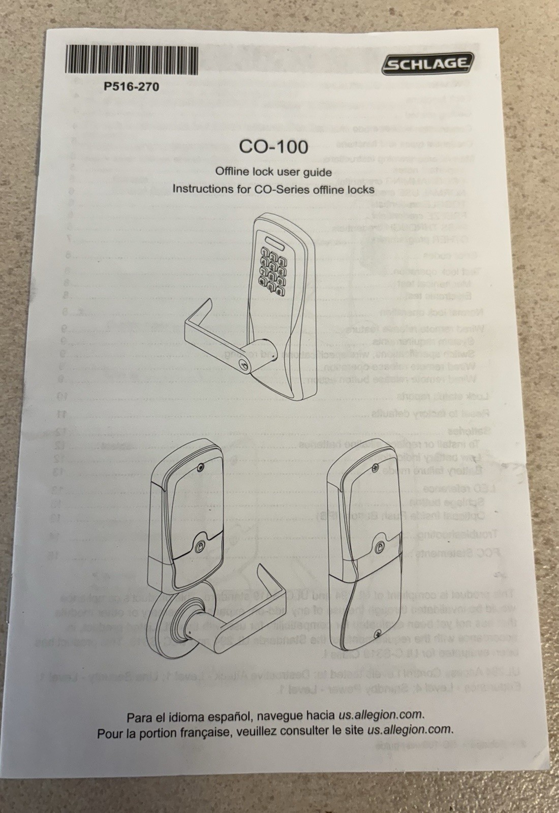 Schlage CO-100 Electronic Door Lock New Open Box Never Used All Parts Included. Shipped with USPS Ground Advantage.