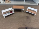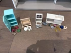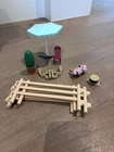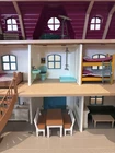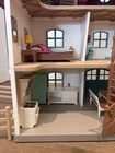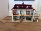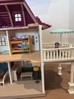 Schleich Dollhouse with Kitchen, Bedrooms, Bathroom, Livingroom, Attic, Patio and Fences for horse pasture attachment. Comes with Family and dog figurines. Fully furnished with accessories