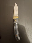 The Schrade Vintage PH2 USA knife is a 7" full tang hunting knife with a carbonized stainless blade and micarta handle. It features a drop point blade type and a blue color. This ambidextrous knife was made in the United States between the years 1972-2004 and is in excellent condition.
