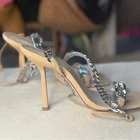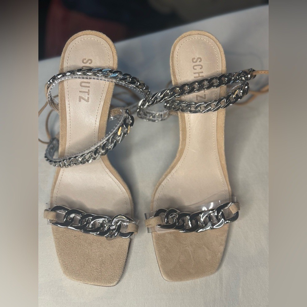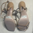 A chic mix of leather and vinyl, Clelia Sandal showcases an of-the-moment square-shaped toe, ankle-tie fastening and stiletto heel. This eye-catching style is finished with a chain accent. Material: Suede + Vinyl + Metal Chain Heel Height: 4.3 in | 11 cm New without box. Size 8 As a 5-star seller across multiple platforms, I take great care in inspecting all items for flaws. If any issues are found, they will be clearly noted in the listing. However, please keep in mind that I am human, and sometimes I might miss something. Please review all pictures carefully and feel free to reach out with any questions—I'm always happy to help! If the item is not new with tags, please manage your expectations, as these are pre-loved, worn items. Thank you for supporting sustainable shopping! For your protection and mine, all items are photographed before, during, and after packaging.