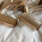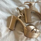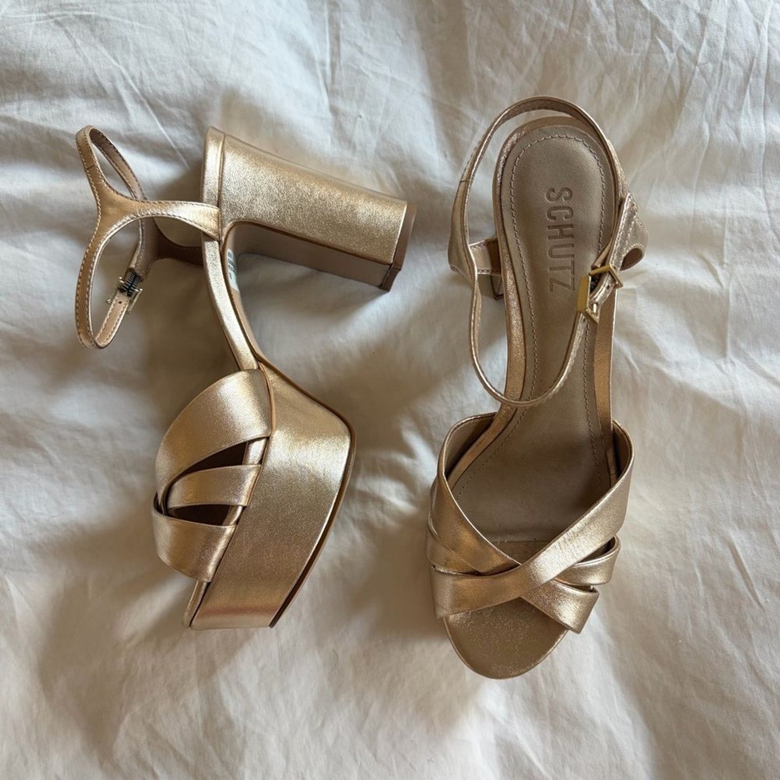 Schutz Keefa sandals. Disco glam with chunky high-heeled platform silhouette, enhanced by soft leather. New, never worn. Size 7.