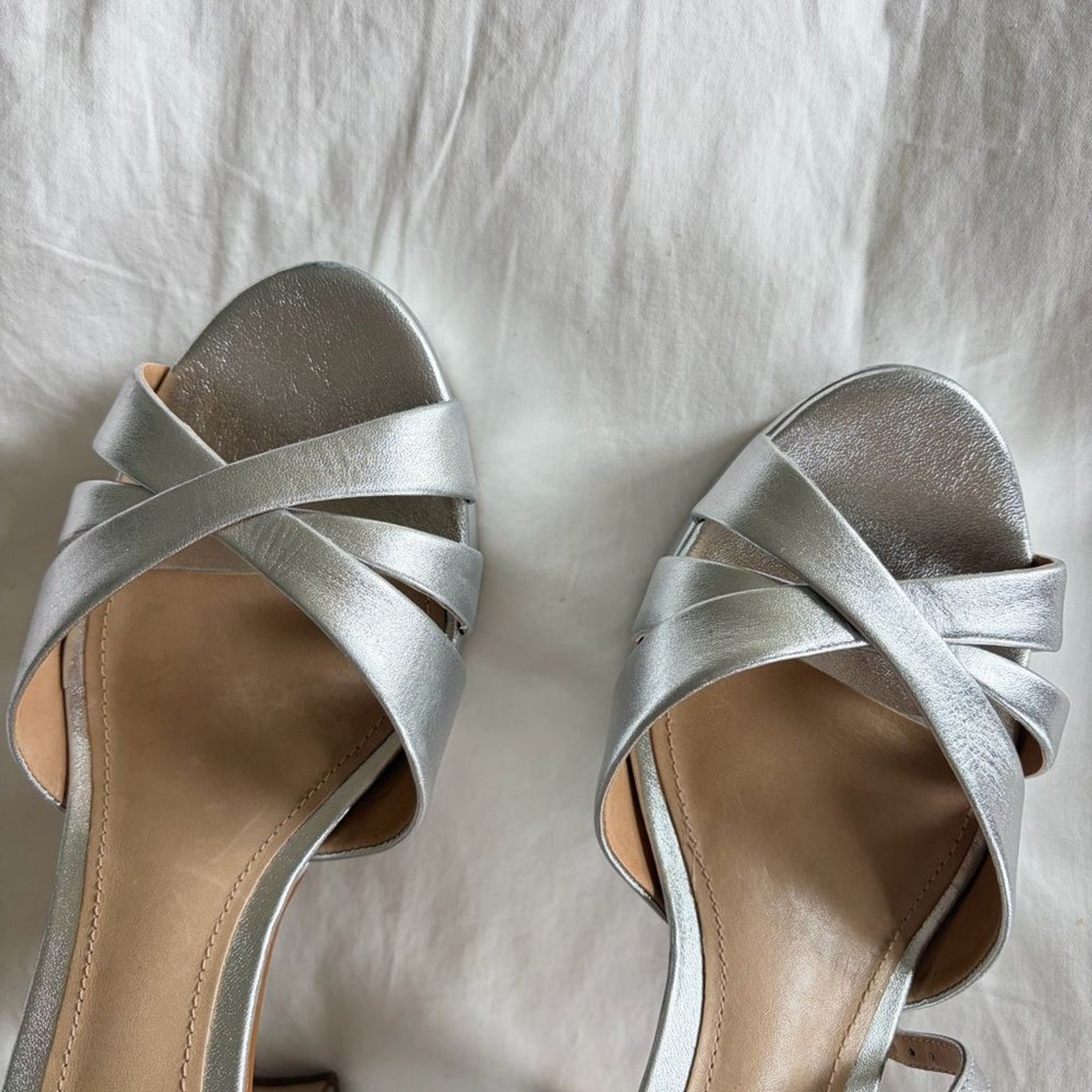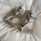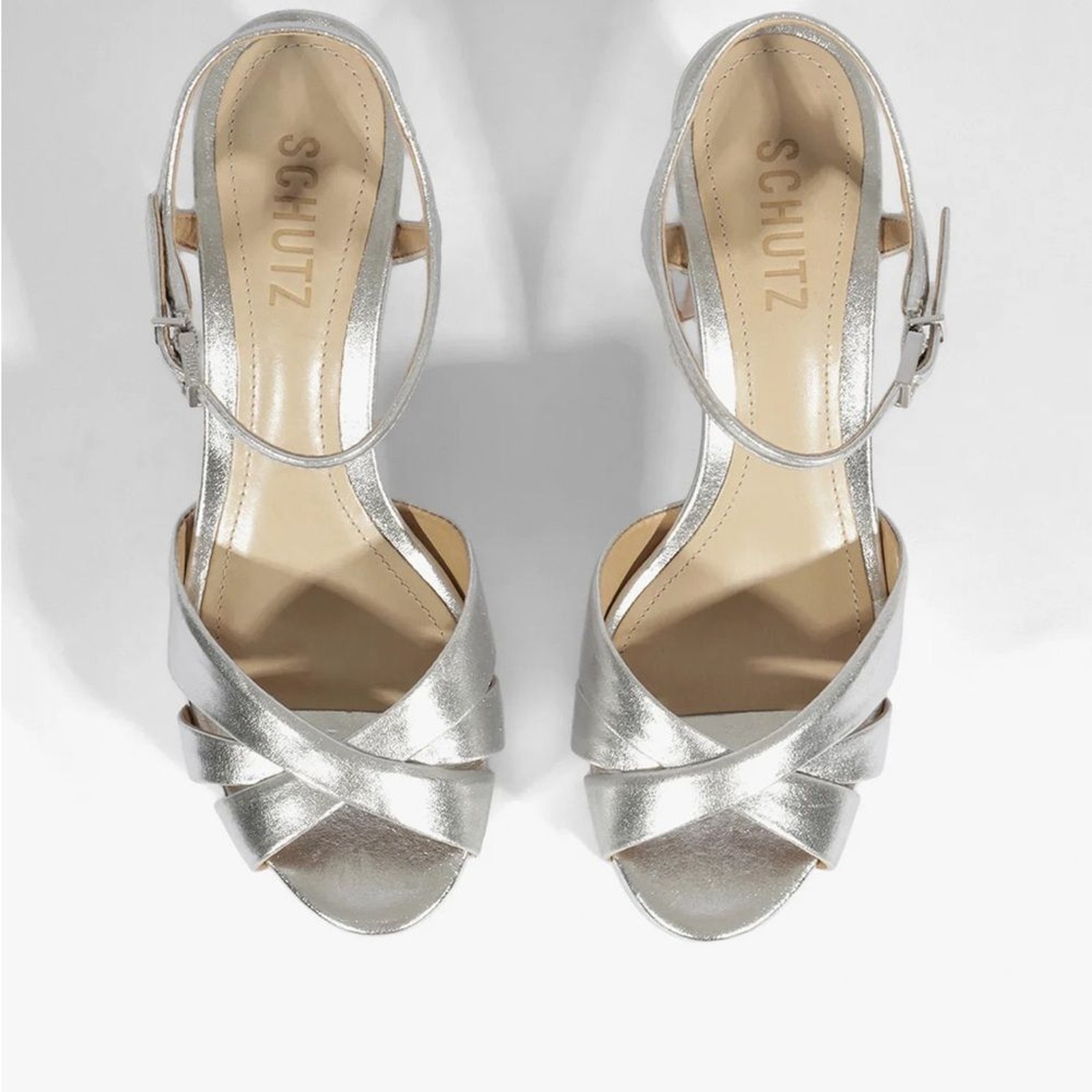 Schutz Keefa sandals. Disco glam with chunky high-heeled platform silhouette, enhanced by soft leather. New, never worn. Minor blemish on heels from storage. Size 8.5.