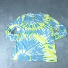 Brand: Scooby-Doo Style: Men's long sleeve crewneck graphic T-shirt with regular fit and lightweight jersey construction. Color: Multicolor blue, yellow, and white tie-dye swirl pattern across the body and sleeves. Tag size: Large (men's regular fit). Material: 60% cotton, 40% polyester; refer to interior printed care label for complete fabric and care instructions. Features: Crew neckline with ribbed trim, long sleeves, straight hem, soft lightweight jersey knit fabric, and pullover styling suitable for layering. Branding: Scooby-Doo logo printed at interior neck, front graphic featuring The Mystery Machine van with Scooby-Doo and text THE MYSTERY MACHINE, MYSTERY INC., and "those meddling kids" Crystal Cove, plus stacked lineup of classic villains printed down one sleeve. Country of origin: Made in China. Season and use: Lightweight long sleeve tee ideal for fall weather, casual everyday wear, loungewear, and themed events or conventions. Pattern and design details: Allover tie-dye spiral pattern, bold front Mystery Machine graphic, and detailed black line art of Scooby-Doo villains on one sleeve for a nostalgic cartoon-inspired look. Codes: Interior printed label lists 60% cotton, 40% polyester, Made in China, RN# 115665, and Scooby-Doo character copyright information; see photos for complete label details. Item is in gently worn pre-owned condition. Item may contain normal signs of wear, blemishes, discoloration, creases and/or other signs of distress. Photos depict the exact item you will receive including measurements . Please refer to photos for full details prior to purchasing. If need be please measure against a similar clothing item you own. Items are cleaned in accordance with eBay's policies and standards and stored in a smoke free weather controlled environment. Fast USPS Shipping - 30 Day Free Returns - Hats Ship in a Box
