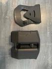 The Scorpus Double Magazine Pouch is designed by FAB Defense for .45/10mm double-stack magazines. Made of polymer, this pistol magazine pouch is durable and reliable. It is suitable for people and is ideal for hunting and sporting activities. The pouch securely holds two magazines in place, making it convenient for quick access during shooting sessions. New condition, just an opened package.