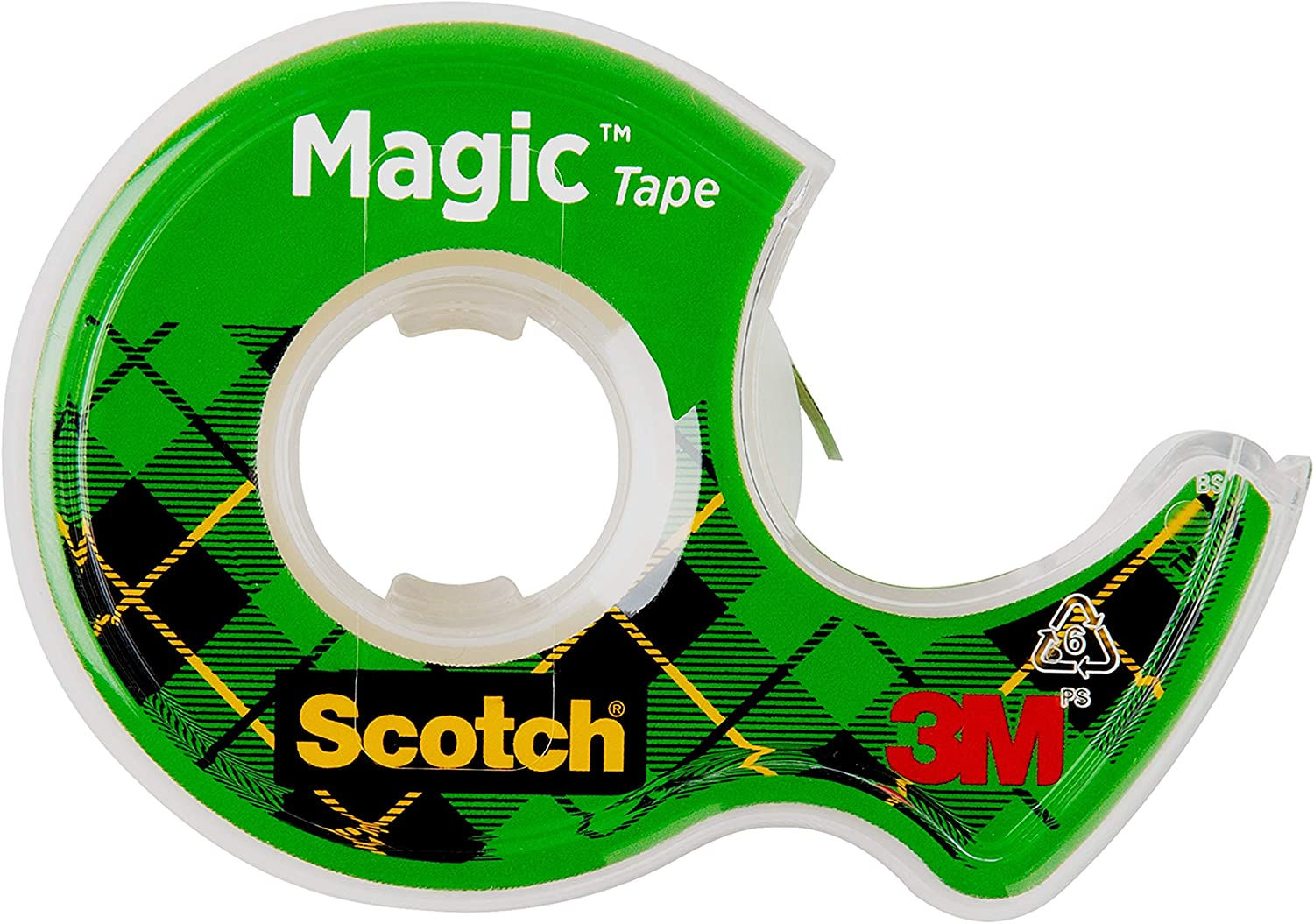 INVISIBLE TAPE: 4 rolls of Scotch Magic Tape with dispenser mends rips and tears securely, permanently and invisibly BONDS SECURELY: Clear tape that gives you a strong, secure and permanent seal using trusted 3M adhesive technology BLENDS IN: Matte finish and invisible, this tape blends in with paper, making it a great addition to your back to school supplies IDEAL FOR: Use this office tape for permanent, secure paper mending, including mounting, quick fixes, project additions and repairing original documents and photos REFILLABLE TAPE DISPENSERS INCLUDED: Tape glides off easy-to-use Scotch tape dispensers (included) smoothly and cuts easily Scotch Magic Tape lets you magically mend the many rips and tears of life - securely, permanently and invisibly. The original matte-finish invisible tape uses unique 3M adhesive technology to bond tightly with paper and disappear without a trace. It's the ideal matte tape for permanent, secure paper mending, whether you need to make a quick fix or an addition to your project. This clear tape is also perfect for fixing torn or ripped originals, like birth certificates or library book pages. Easy to apply, this office tape is photo-safe for worry-free mounting or mending of special photos. You can even write on this adhesive tape with a pen, pencil or marker, making it easy to label items. With the easy-to-use Scotch tape dispenser (included), Scotch Magic Tape rolls out smoothly and cuts easily with no time, energy or tape wasted. These dispensers are a convenient addition to school, classroom supplies or office supplies. Make an eco-conscious choice: refill and reuse the included hand-held office tape dispenser with Scotch Brand Tape. The best projects start with the No. 1-selling home and office tape (based on 2022 NPD data).