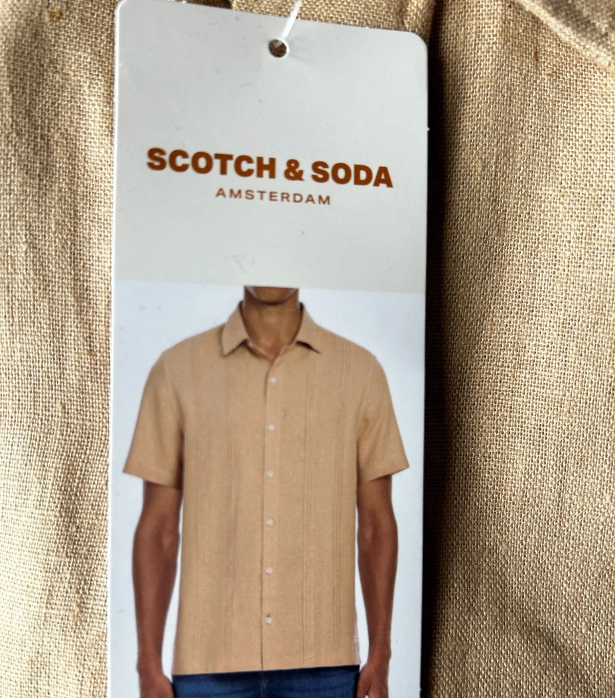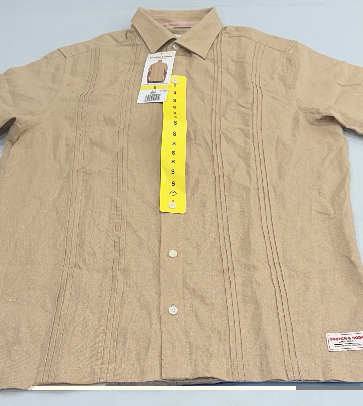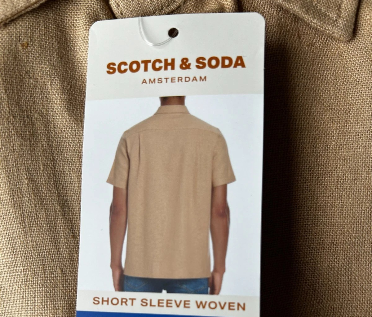 Scotch & Soda Men's Linen Blend Short Sleeve Woven Shirt Size: Small Color: Tan Content: 55% Linen / 45% Viscose