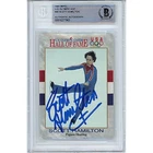 This 1991 Impel U.S. Olympicards Hall of Fame trading card features figure skater Scott Hamilton and is signed in hard ink by the athlete himself. The autograph has been authenticated by Beckett Authentication Services (BAS) and the card comes encapsulated in a slab for protection. This card is a great addition to any sports trading card collection and is perfect for fans of athletics and figure skating. The card is in excellent condition and is an original trading card, not a licensed reprint. Don't miss the opportunity to own a piece of Olympic history with this autographed Scott Hamilton U.S. Olympic Hall of Fame trading card. Autographed in Blue Sharpie. Scott Hamilton Autographed 1991 Impel US Olympic Hall of Fame Trading Card #46. This signature has been authenticated and Encapsulated by the Experts at Beckett Authentication Services (BAS). Certificate Number 00016277963.