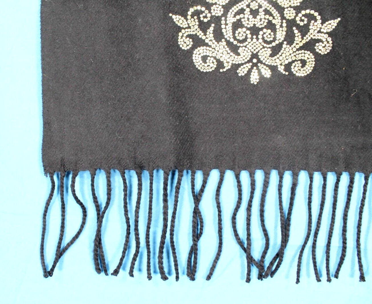 This gorgeous cashmere-style scarf is a stunning statement piece! The black floral rhinestone design adds a touch of elegance, while the fringe trim gives it a playful, boho vibe. Despite being gently used, it looks flawless—soft, lightweight, and perfect for dressing up any outfit. The 12" x 68" size drapes beautifully, and the 100% acrylic material feels luxurious. Love that domestic shipping can be combined too! A must-have for anyone who loves chic, eye-catching accessories.