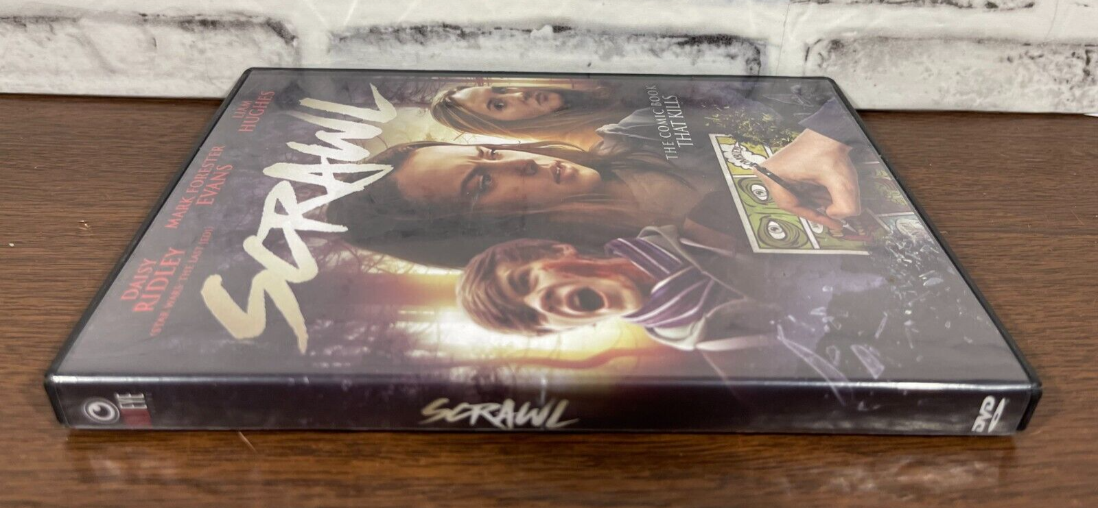 The product is a DVD of the 2019 horror movie "Scrawl," directed by Peter Hearn and starring Daisy Ridley. It has a run time of 82 minutes and is in DVD format with Region Code 1 (US, Canada). The DVD is in a tall/DVD case and is the Standard Edition released by Mvd Visual. The movie is unrated (NR) and is suitable for horror genre fans. Good preowned condition with normal preowned shelf wear. This DVD has never been watched. Please see all photos.