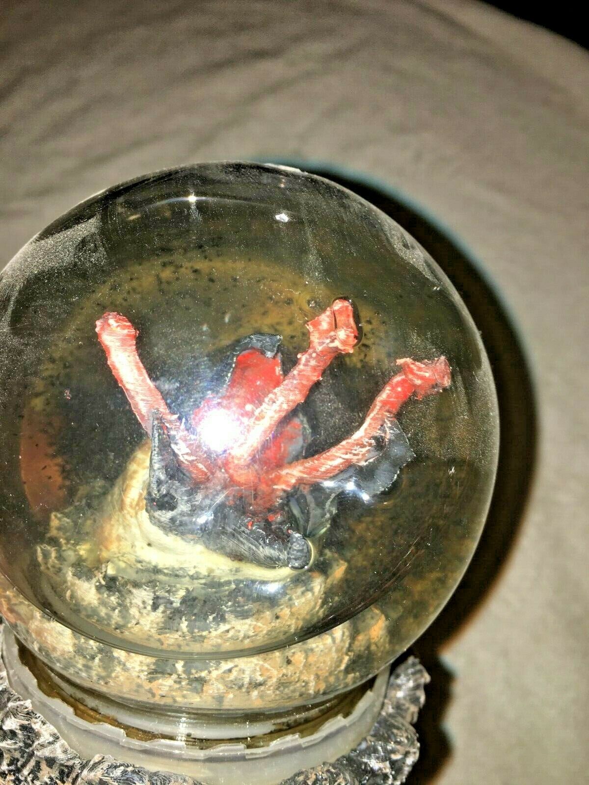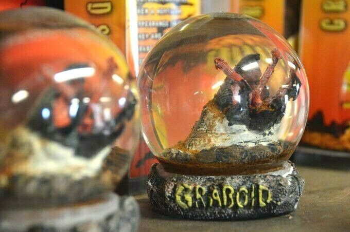 UPDATED>>>>Here's a Bloody Disgusting article with the pictures of these on set. You can see the Graboid globes. FINALLY some actual footage/pics of these props on the store set. https://bloody-disgusting.com/tv/3496564/writer-shares-images-tremors-pilot-thats-not-going-series/ A HOLY GRAIL FOR TREMORS FANS. TREMORS has a HUGE cult following with 6 movies (likely 7) and a few tv shows/webseries. Screen used GRABOID WATER "DIRT" GLOBE from the failed 2018 TREMORS TV PILOT starring KEVIN BACON. A pilot tv Tremors show was made starring Kevin Bacon. It wasnt picked up by the SYFY channel or anyone else so it appears to be scrapped. No one has seen it except for the filmmakers , etc. A trailer is on Youtube. I messaged the art director and he confirmed. On the show someone (possibly Bacon) owns a tourist store in the town of Perfection. This DIRT GLOBE is one of the items that were in the store. The store has other GRABOID related items also that I have listed...GIANT SNAKE/action figure/drink holder. Definitely one of the coolest items Ive listed in my history. Look at the pics, theres a pic of some Valentine Mckee bobble heads, these items Im listing are probably somewhere in that scene or close to those bobbleheads. It shows Mckee is trying to sell his likeness to make a fast buck. Made of plastic dome, black dust inside when you shake it. Not filled all the way SEE PICS. Nothing is leaking though. May have minor wear, blemishes, etc. AS IS, ALL SALES FINAL, FOR PARTS, NO RETURNS. FULL INSURANCE, SIGNATURE CONFIRMATION.