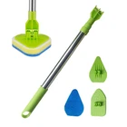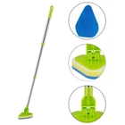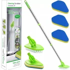 With 2 In 1 Design: Each set of shower cleaning brushes is equipped with a long handle and four brush heads, including a brush and three replacement sponges, which can adapt to your different cleaning needs. Rotatable Brush Head: This floor scrubber has a 180°rotating design, which can help you automatically rotate when cleaning corners. You can easily and quickly clean every corner and circular area without squatting down. Retractable Handle: The shower brush for cleaning has an ergonomically strong and durable steel rod, which can extend from 18" to 35", with a non-slip EVA handle and hook design. Replaceable Brush Head: The cleaning brushes are detachable, and the four brush heads can be used individually to meet your various cleaning needs. The hole on the top can help you store the cleaning brush in a closet or on the wall. Widely Application: The wall cleaner with long handle can be applied to many surfaces and fit into corners while the front bristles are shaped to get into corners, recesses and baseboard. Descriptions: We provide 1 bristle and three sponge brushes. Four cleaning brushes can be detached and replaced. The tile scrubber has an ergonomic non-slip EVA handle, which can be extended from 18" to 35".The scrub brush adopts a triangular and 180° rotating brush head design, which is convenient for you to scrub hard-to-reach corners. Features: 1. Removable Bristles: Three replacement sponge brushes can help you clean different places and make your home cleaner. 2. 180°Rotation: The floor scrubber can achieve 180°rotation, which is easier to clean up sanitary dead corners without squatting. 3. Ergonomic Design: The ergonomic alloy handle is easy to grasp, and the non-slip handle helps you better grasp and receive force. 4. Triangular Head: The triangular brush head can help you clean the corners of the kitchen and bathroom. Specifications: Name: Scrub Brush with Long Handle Material: sponge, aluminum alloy, pp, etc. Product Material: about 11.5*5.5*42.5cm/ 4.53*2.16*16.73'' Packing List: Long Handle*1 Brush*1 Sponge Brush*3
