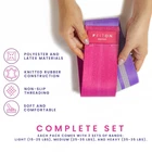 Sculpt Resistance Bands for Working Out prove that style and comfort can go hand in hand. A union of performance and beauty, these leg resistance bands feature a multi-colored gradient design that will motivate and push you to keep going in transforming your legs and glutes. Made from polyester and latex, each workout band with knitted rubber construction will not slide from your hips or legs because of its non-slip threading. We provide a mesh pouch for these bands. You could take hips and glute bands on the go. Use it to get the perfect stretch anytime, anywhere. You get 3 bands of different colors, each for a specific intensity level of workout. This pack provides Light (15-25lbs), Medium (25-35 pounds), and Heavy (35-45 pounds) leg bands, giving you more flexibility and options to achieve your fitness goals. WORKOUT IN STYLE AND COMFORT: Sculpt Resistance Bands workout tools prove style and comfort can go hand in hand. A union of performance and beauty, our hip resistance bands feature a multi-colored gradient design that will motivate and push you to keep going in transforming your leg and glutes. You can also use them for the arms and abdomen. MADE TO LAST: We designed and crafted our workout bands for women and men with durability in mind. Made from polyester and latex, each loop band with knitted rubber construction will not slide from your hips or legs because of its non-slip threading. This is a quality flexibility band to add to your home fitness routine. FREE APP TO EXERCISE ANYWHERE: Looking for non slip resistance bands for a home workout that you can also bring to the park or a gym? We provide a mesh pouch for these bands - so you can take our womens glute and hip band whenever you need it. Plus, we include free access to our app with all of our products as a companion to your workouts. Have on-the-go access to an amazing health and wellness platform you'll love! Get that needed stretch anytime, anywhere! FOR ANY LEVEL OF WORKOUT: You get three (3) bands of different colors, each for a specific intensity level of workout. This pack provides light (15-25lbs), medium (25-35 pounds), and heavy (35-45 pounds) leg bands, giving you more flexibility and options to achieve your fitness goals. FITNESS ACCESSORIES WITHOUT THE GUESSWORK: At , our goal is to provide you with premium, fashionable accessories like noslip resistant home fitness bands for work out at a terrific value. We take care of the guesswork in selecting quality, convenient fitness accessories, so you'll be more inspired to pursue an active lifestyle from anywhere.