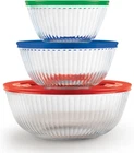 6-PIECE: Set includes 1.3-qt, 2.3-qt, and 4.5-qt round glass bowls with BPA Lids. This is the perfect set for all manners of prepping, baking, food storage and other home entertainment. EVERYDAY USE: High-quality tempered glass gives you a peace of mind when managing your food, resists stains and odors. Worry less about scrubbing hard to get rid of stains or any funny smells. NON-TOXIC LID: BPA-Free plastic lid is freezer, microwave, and top-rack dishwasher safe. No need to hold back when warming your food or storing your leftovers for tomorrow. PERFECT LID FIT: Plastic lids are designed to securely keep your food fresh and tasty for longer. Too many leftovers? The Pyrex plastic lids keep a tight fit on your food while being easy to handle. PYREX IS THE #1 BRAND OF GLASS BAKEWARE*: Loved for generations, experienced cooks and beginners alike have reached for Pyrex brand glassware products for all their cooking, serving and storing needs. Source: The NPD Group / Retail Tracking Service, dollars and units, 12 ME December 2022 This versatile trio of glass mixing bowls include 3 sizes that do triple duty. Glass is the ideal material for cooking: in one bowl, you can mix your ingredients, pop into the microwave when you need to, and even serve, all in the same bowl. With 3 sizes to work with, you’re ready for anything your recipe calls for. Pop them into the dishwasher for easy clean-up, and then store them nested to save space.