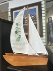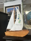 This was a spring promotional item from Sea Glass Wine, it is a wooden Sailboat. It measures about 35" tall, 26" long and about 3" deep. The boat you will receive is brand new and in the original box UNASSEMBLED. **PLEASE NOTE: The boat pictured is just a sample, your boat will include a stand as well. This is a unique and beautiful item to display anywhere. **Please see all photos. * Please Examine ALL Photos Carefully * Thanks for Viewing our Listing & Have a Great Day! Smart Decor and More Estate Sales Specialist Selling Quality Used Furniture and More Showroom Location in Warminster, Pa. Our Customers are Important to Us, Our Goal is 5 ***** Satisfaction & Feedback. All Orders are Carefully Packaged & Typically Shipped within 1 Business Day Contact Us with Questions, Concerns & Shipping Quotes 215 675 9001