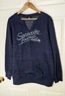 Excellent pre-owned condition. No stains, snags, signs of wear. The fleece lining is still soft and not matted at all. Very gently used for being from the '90s. I really love the unique style and pleating on the arms. Nice deep blue and unique Seahawks logo. The logo is the only part that slightly shows any age! *Disclaimer* Material and size tag are too faded to read. Size is based off of average measurements for a womens XL sweater. Please see measurements to ensure a great fit! Thank you for your interest, I am available anytime to answer questions about this item! Measurements Are: (L) 28in. Shoulder to hem. (W) 25in. Pit to pit. 22in. Across bottom hem. (Sleeves) 24in.