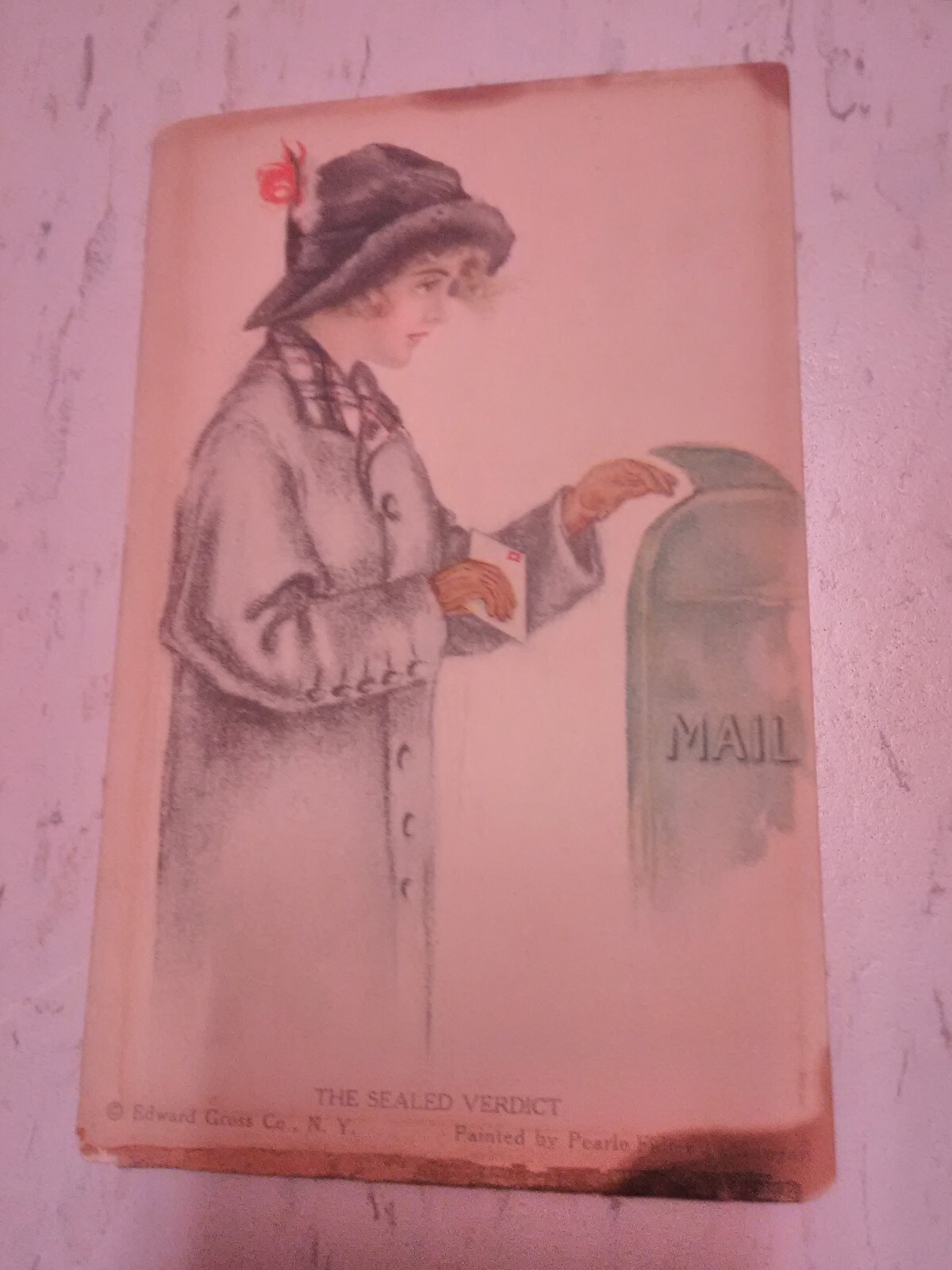 Original - Vintage No rips, tears, or writing Unposted - Some age discoloration The Sealed Verdict - Edward Gross Co - Pearle Fidler LeMunyan Stating His Case - Edward Gross Co - Pearle Fidler LeMunyan George and Bliss Boat Line, on Lake Placid N.Y. Seattle Space Needle Family owned Shipping insurance not included