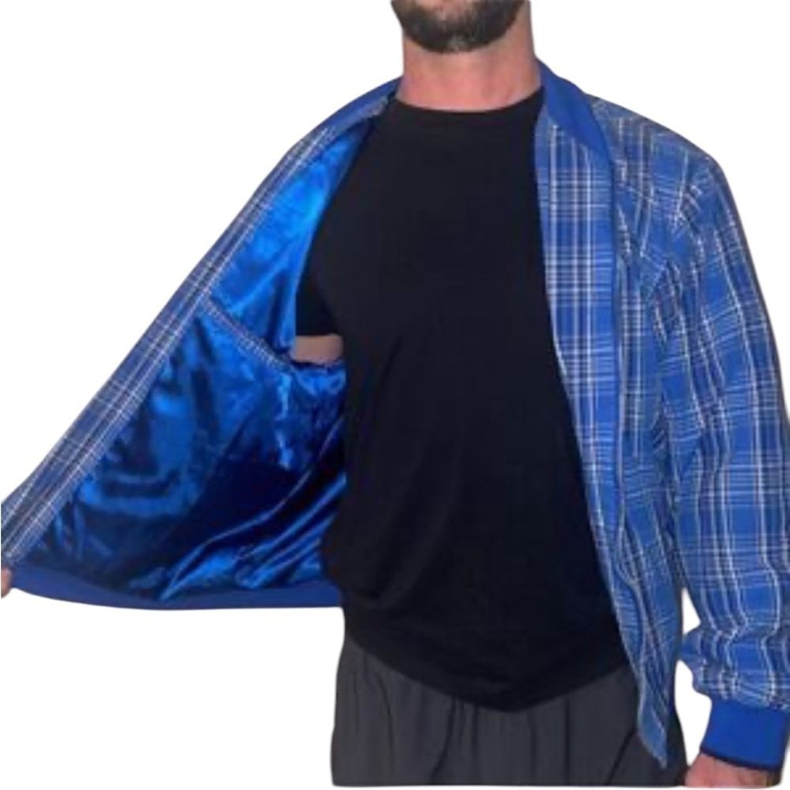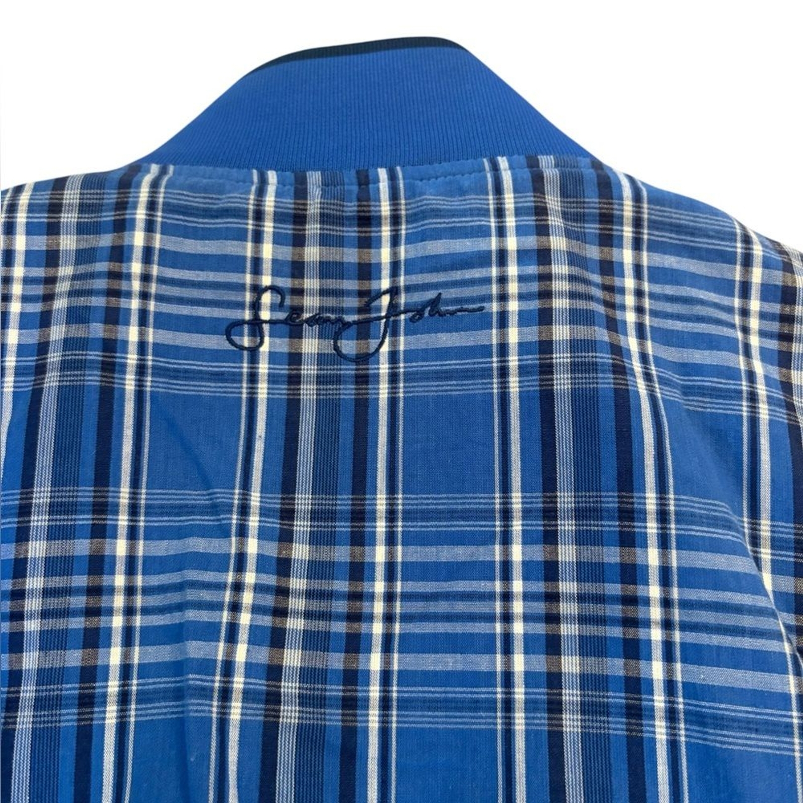 Sean John Blue Plaid Bomber Jacket Mens Size Medium Excellent condition no flaws to note Cotton shell polyester lining Hand pockets Full zip See photos for flat lay measurements