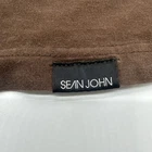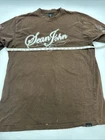The Sean John T-Shirt in 2XL size is a stylish and classic piece with a brown color and graphic print logo embroidery. Made from cotton, this relaxed fit shirt features a crew neck and short sleeves, making it perfect for all seasons including summer, fall, and spring. With a nod to the 90s and USA theme, this t-shirt from the renowned brand is a versatile addition to any man's wardrobe. Check Pictures for flaws and measurements