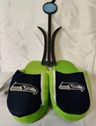 Get ready to show off your love for the Seattle Seahawks with these Foco NFL Football Youth Jersey Mesh Soft Slide Slippers. Perfect for any young fan of the National Football League (NFL), these officially licensed slippers come in team colors and feature the Seahawks logo. The slide design makes them easy to slip on and off, while the mesh material provides comfort and breathability. These Youth Jersey Mesh Slippers are ideal for wearing during the regular season or playoffs, and are available in small sizes (Youth 1-2) for both boys and girls. They are less than 8 oz in capacity, making them lightweight and perfect for indoor wear. Made by Forever Collectibles in China, they are high-quality and durable. Show off your team spirit and keep your feet cozy with these Seattle Seahawks slippers. Free Shipping
