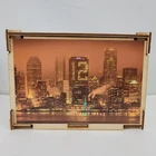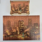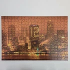 Seattle, Washington Wooden Puzzle, 300 Pieces, 15" X 10", Cedar Wood, USA. This is a fun puzzle of a hazy Seattle Waterfront at night. It is probably a foggy night, but the color makes it seem like it might be smoke season. Sibbett Studio is a Washington local company that make really nice wooden puzzles. It comes with the in a nice wooden box.