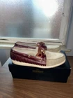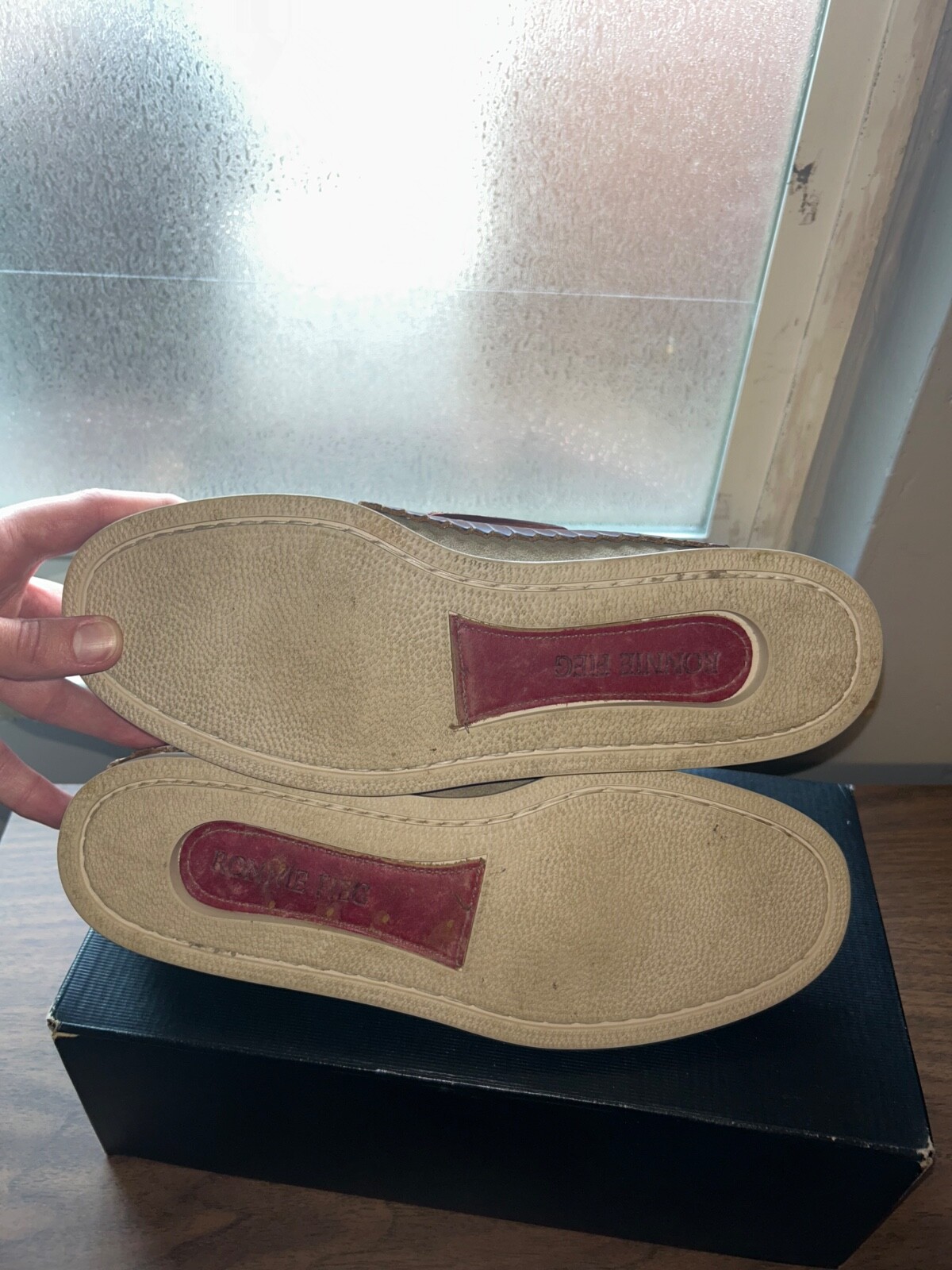 The Sebago Campsides - Artisan Collection - Ronnie Fieg - KITH in size 11.5 are a stylish pair of men's casual loafers designed by Ronnie Fieg. These brown suede loafers feature a classic penny loafer style with a medium width, making them a versatile and comfortable option for everyday wear. Part of the collaboration between Sebago and Ronnie Fieg's KITH brand, these shoes are a blend of classic design and modern flair, perfect for adding a touch of sophistication to any casual outfit.
