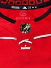 The product is a red Carolina Hurricanes jersey featuring player SEBASTIAN AHO's name. It is a men's size 50 made by adidas, officially licensed by the National Hockey League (NHL). This game jersey is designed for the regular season and is suitable for fans looking to show support for the Carolina Hurricanes and Sebastian Aho. The jersey was manufactured in Indonesia.