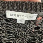 See By Chloe Sweater Size 10 (worn on a Size 2 mannequin/my photos do not show the right fitting) Approx Measurements laying flat pit to pit 19" Length 22" Sleeve measured from the pit 17" Black with gold metallic threads. Crew neck Long sleeves Cable knit Open Stitches •No Returns No Trades No Holds