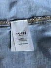 Embrace timeless style with the Seed Heritage Denim Skirt, a must-have for any wardrobe that values comfort and durability. Crafted from a quality blend of cotton and elastane, this A-line midi skirt offers a classic blue hue that pairs effortlessly with your favourite tops and shoes. Designed to cater to a size 12, it features a convenient zip closure and is constructed to fit seamlessly into both casual and cocktail settings. This versatile piece is engineered to transcend seasons, making it an ideal choice for year-round wear. Whether you're out for a casual catch-up with friends or planning a chic weekend getaway, this skirt's solid pattern and all-season weightlessness mean you'll stay comfortable without compromising on style. 52/53 cm wide 44 cm long Size tag has been removed And some small yellow stains on the back ( washable ) not noticeable  General wear and tear