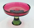 Seguso Vetri d'Arte Murano Sommerso Pedestal Compote Dish 1960s This is a beautiful Murano pedestal dish, according to the Murano glass group I sent pictures to, this is most probably manufactured by Seguso Vetri d'Arte 1960's. Here is what a group expert said " The olive green/grey is reminiscent of SVdA and Cenedese pieces made in the 1960's. Mario Pinzoni used it alot when he took over from Poli. Cenedese has used similar in sommerso etc The watermelon/pink glass reminds of colours used by Cenedese (especially in Scavo pieces). It looks a bit pink for SVdA but it could have a translucent opalina covering that would change the violet/ruby colour they use." I call it my watermelon compote, the color is the prettiest raspberry red and green, all one piece. Wouldn't you say this is perfect for Christmas! Watermelon Colors too!! Measures 7-1/4" tall x 5-1/4" across. Weighs 2 pounds 9 ounces. Excellent condition, no chips or cracks. there is some scratches on the super highly polished bottom as shown in the photo. Please message me if you have any questions, Thanks for viewing!