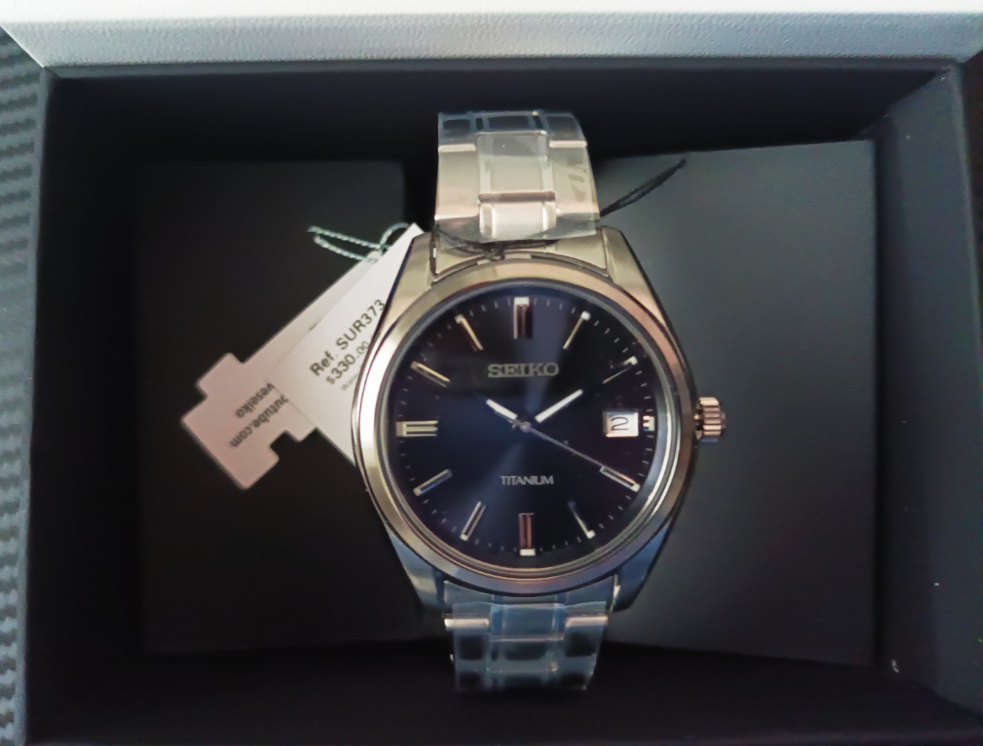HOBBY-USA SEIKO Blue dial Titanium Quartz Movement SUR373-MINT CASE DIMENSIONS: DIAMETER: 40.2 mm THICKNESS: 6.84 mm CASE: Titanium case CRYSTAL MATERIAL: Sapphire crystal WATER RESISTANCE: 10 bar, 100 meters (330 feet) DIAL COLOR: Blue STRAP: Titanium bracelet LUG WIDTH: 20 mm MOVEMENT: Quartz Caliber 6N52 Shipping Policy Please look at the estimated time which is below price. Return Policy We are authorized dealer and everything we sell is fully covered by manufactured warranty. You can return any item in Brand New/unopened condition within 30 days. Please contact us before any return so we can help and issue RMA#.