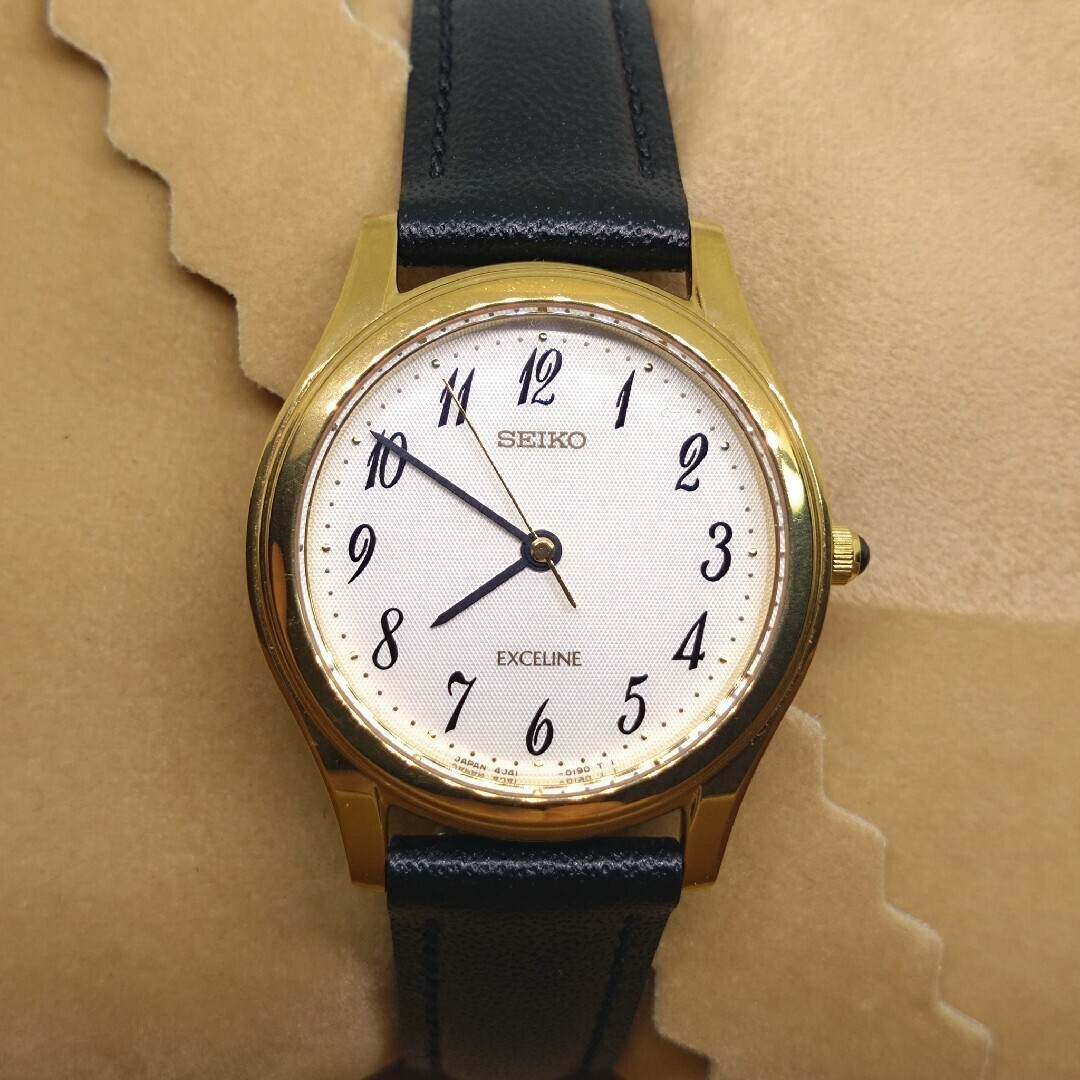 Description Product name: Ladies watch Exceline SEIKO EXCELINE brand 4J41-0110 Color Gold Specifications: Quartz Case size: Height: Approx. 3.3 cm Width: Approx. 2.7 cm (excluding crown) Wrist circumference: Approx. 13 cm to 17 cm (There may be slight errors. Thank you for your understanding.) Accessories: None (※ Box is not included for photography purposes) Condition: In operation (battery replaced) ・Dial: In good condition. ・Case: Slight scratches, but in relatively good condition. ・Glass: In good condition. ・Back cover: In relatively good condition. ・Belt: New belt, black Please check the other images. Shipping Fedex,DHL,Japan Post *For FedEx / DHL shipping items, a person residing in the remote area will have to pay an additional shipping fee. International Buyers - Please Note: Import duties, taxes, and charges are not included in the item price or shipping cost. These charges are the buyer's responsibility. Please check with your country's customs office to determine what these additional costs will be prior to bidding or buying. Thank you for your understanding. Read more... Conditions shown here are based on our standard. Please understand that the conditions of used items that have been stored in our warehouse changes by time. Listings that shows "Working" means that it confirmed working when we stored items in our warehouse, some items might stop working during the shipment or after delivery to you.(We double check if they are working before shipping them out) Pre-owned(used) items are used items, so please purchase if you acknowledge it.