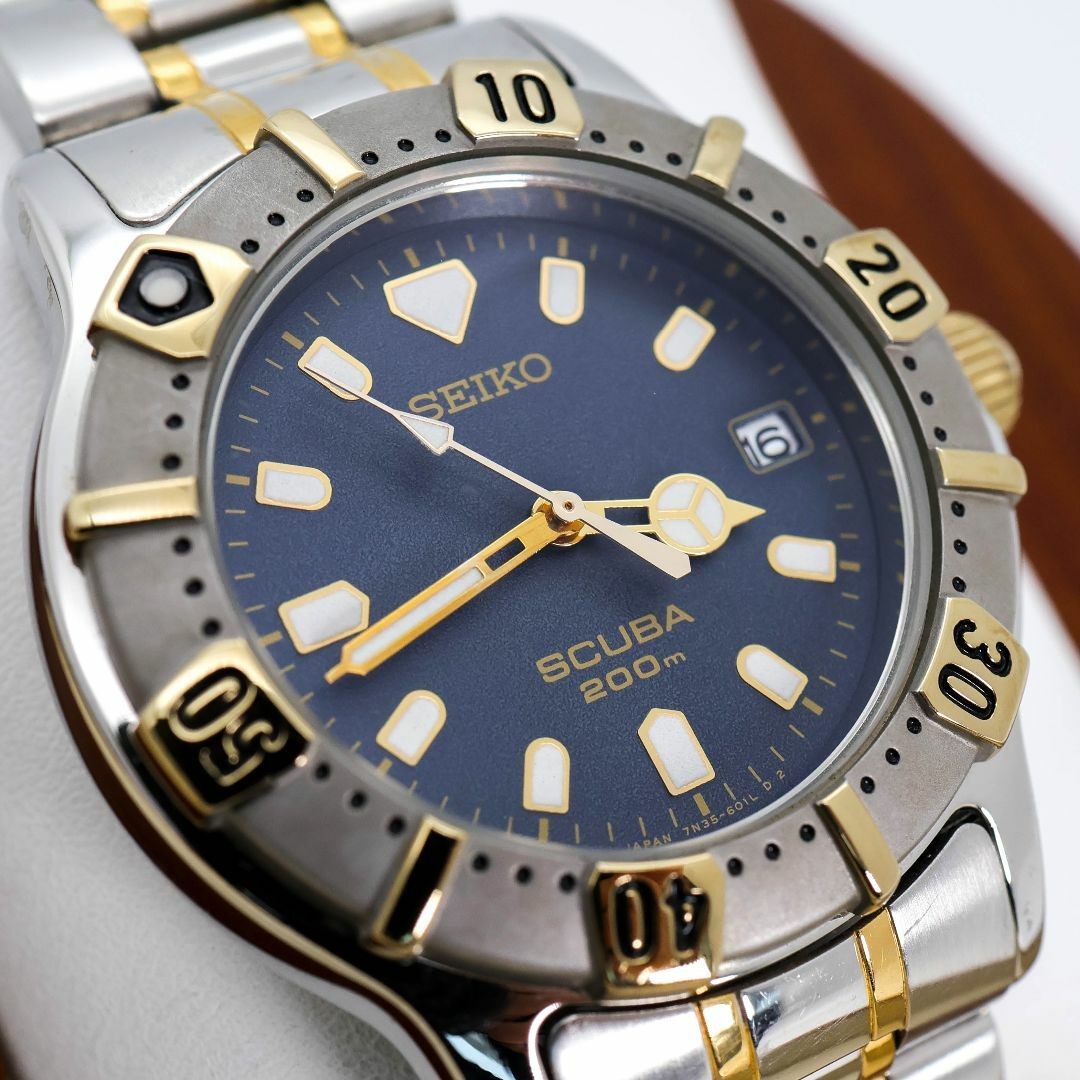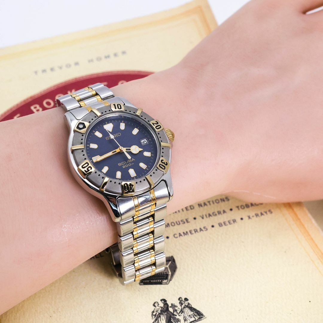 Seiko Scuba Diver Watch Navy Dial Quartz Rotating Bezel Date Excellent Used Condition