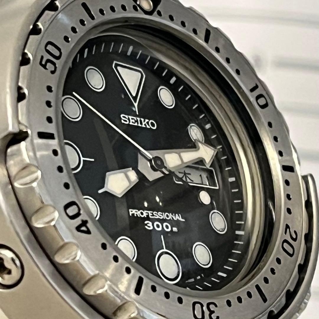 Seiko Tuna Can SBBN007 7C46 Professional Diver 300m Used Key Features ## Product Title: Seiko Tuna Can SBBN007 Professional Diver 300m Quartz Watch, 7C46 Movement, Stainless Steel, Used, Excellent Condition ## Product Description: This is a used Seiko Tuna Can SBBN007 professional diver’s watch, renowned for its durability and precision. Originally released in 1991, this model features a robust design inspired by the 75-series 300m divers, upgraded with a high-performance quartz movement for reliable timekeeping. ### Key Features and Benefits: - Authentic Seiko diver’s watch with a professional 300-meter saturation diving specification - Equipped with the advanced 7C46 quartz movement, offering high torque, anti-magnetic properties, and reliable performance - Features a large, durable case with external protector, emphasizing Seiko’s reputation for toughness - Dual curved dome glass with luminous hands and markers for excellent visibility underwater and in low light - Rotating bezel with smooth, clicky operation and unidirectional rotation for safety during dives - Screw-down crown at 4 o'clock position, ensuring water resistance and ease of use - Day display switchable between Japanese and English, customizable to user preference - Comes with a stainless steel bracelet (22mm width, brushed silver finish, V clasp) and an original resin strap (note: resin strap shows signs of aging) - Precise and functional, with features such as quick date/day adjustment and seconds stop function ### Technical Specifications: - Brand: Seiko - Model: SBBN007 - Movement: Quartz, 7C46 caliber - Case Size: Large, designed for professional divers - Case Material: Stainless Steel - Band Material: Stainless Steel (main), Resin (original strap included) - Band Width: 22mm - Water Resistance: 300 meters (saturation diving, not guaranteed for used condition) - Glass: Dual curved dome crystal - Dial: Luminous hands and markers - Bezel: Unidirectional, with smooth click - Crown: Screw-down, positioned at 4 o'clock - Condition: Used, with minor fine scratches on the crystal not visible in photos, overall excellent condition ### Product Condition: This watch is in excellent used condition with no significant scratches or damages. The crystal has very fine, almost invisible lines that do not affect visibility or functionality. The watch has been tested and confirmed to operate smoothly, including the bezel, crown, and movement functions. ### Main Specifications Brand SEIKO Country Japan Product Description eBay Item Description [Good Condition] SEIKO Tuna Can 7C46-7010 SBBN007 Shipping Using standard shipping (Japan Post, FedEx or DHL), an estimated delivery date will be around 5-14 days after shipment. We send it with your tracking number, so that you can track the delivery status anytime. Shipping is only available to addresses registered on eBay. If you would like to send an item to a different address, please update your shipping address on eBay before you complete your purchase. Company Profile Our store is located in Japan. We will help you to find what you are looking for by searching all over Japan. We know where to look for and provide this service for free, so please feel free to contact us. Payment eBay's recommended payment methods are available. You will be able to pay with credit card, debit card, Apple Pay, Google Pay, or PayPal. International Buyers - Please Note: Import duties, taxes, and charges aren't included in the item price or shipping charges. These charges are the buyer's responsibility. Please check with your country's customs office to determine what these additional costs will be prior to bidding or buying.