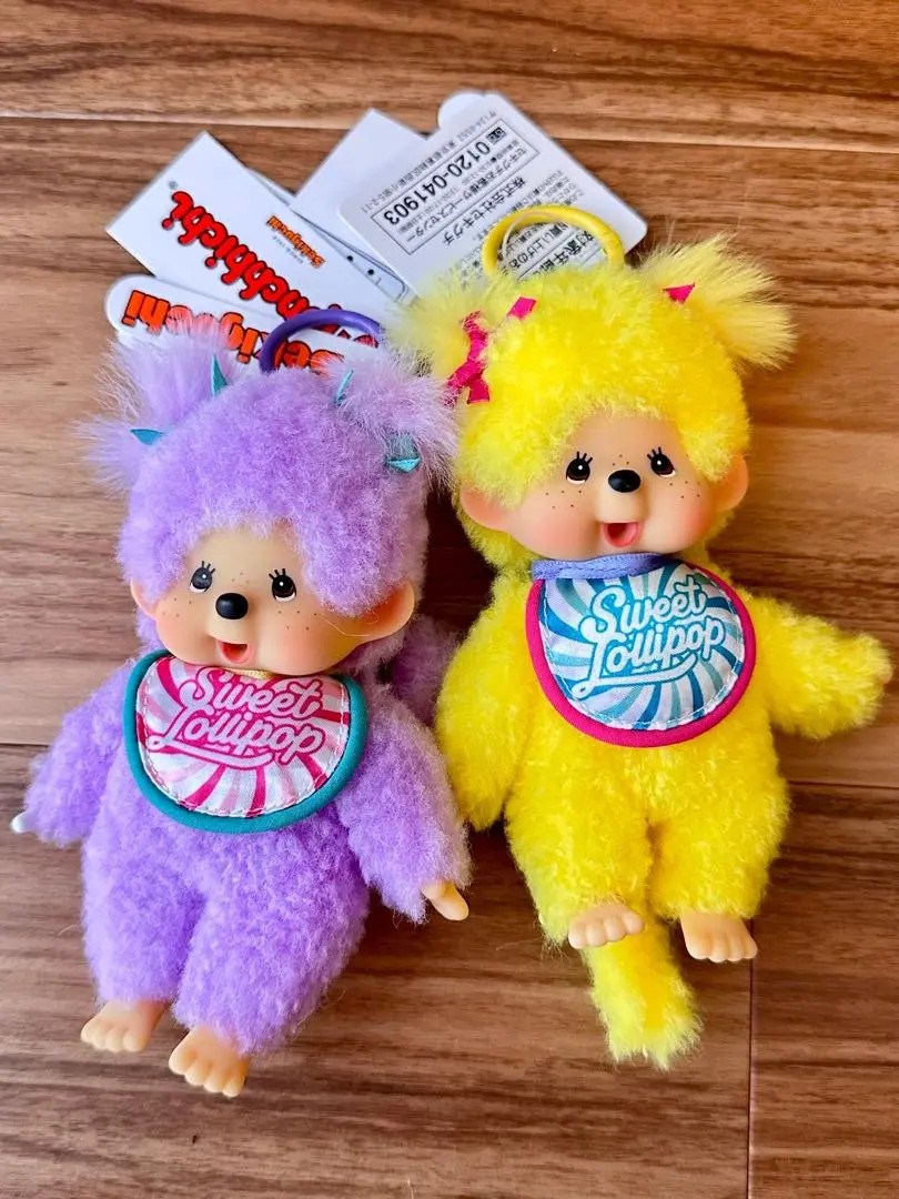 Sekiguchi Monchhichi Sweet Lollipops Plush Doll Pair with Keychain Japan S Size