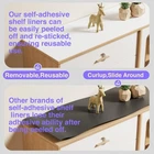 Name: Peel and Stick Adhesive Removable Liner Size:10 x 144 In Quantity: 1 Roll Color: White Suitable for: drawers, cabinets, wooden shelves Upgrade Your Cabinets: EVA Shelf liners are 100 percent waterproof and are designed to protect your cabinets from accumulating unwanted dust and debris; while simultaneously protecting your drawer, furniture, or any surface them from daily wear and spills Self-Adhesive Shelf Liner: Adhesive paper are a great solution to prevent the mats from sliding and curling around; With their textured, raised surfaces, these mats provide excellent grip, ensuring that your belongings stay securely in place Easy To Cut: Our cabinet drawer liners measure 10 x 144 inches and have cut lines on the back, each spaced 0.25 inches apart, making cutting and measuring very easy; To trim neatly, you just need to follow the cut lines Easy To Install: Our self-adhesive drawer liners come off easily, you can remove and start again even if not used correctly; Be sure to clean and dry the surface of the furniture before installation to achieve the best results Multi Use: This 10 inch wide cabinets liner can be used not only to protect furniture, but also to prevent kitchen utensils from falling off; It can also be used as a pantry liner, drawer liner or bookcases liner, household essential products