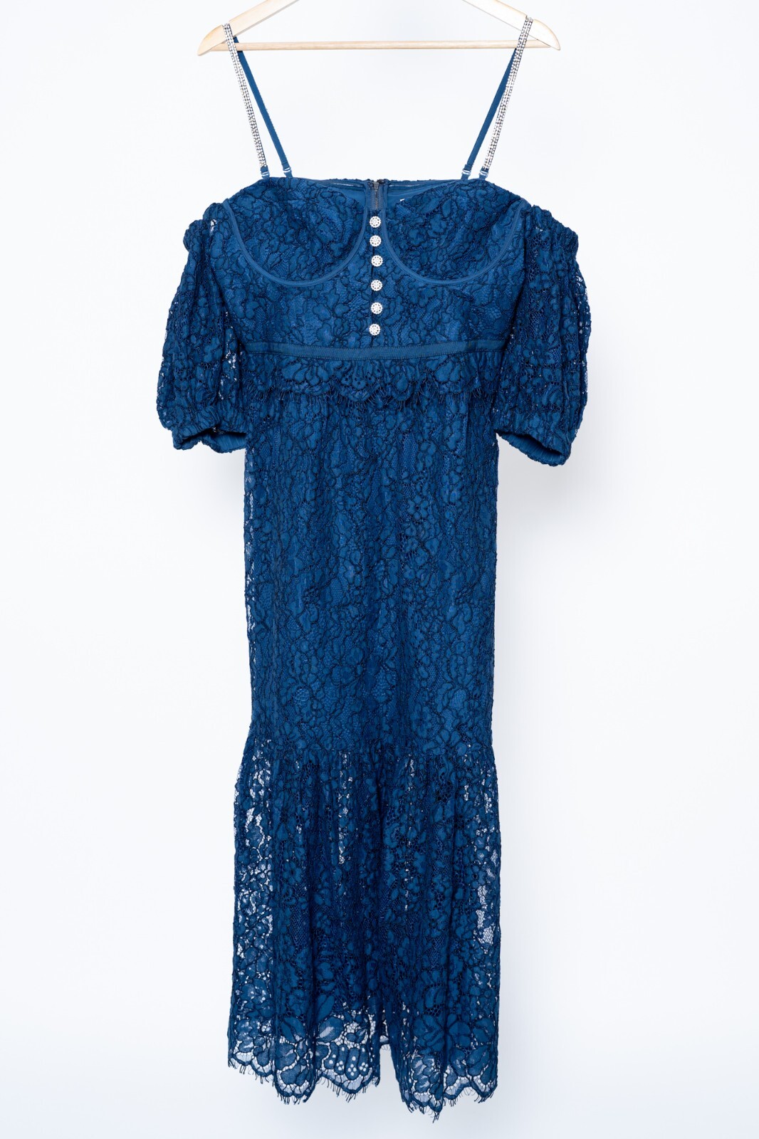 Self-Portrait Dress Very pretty Self portrait fine corded lace midi dress. Perfect for a wedding, the races, or other special occasion etc. Comes with removable diamante straps. Colour: Robot Blue Size: UK 14. Condition: Good condition. NO returns or overseas postage. Any questions please ask. Thanks for looking. See my other listings- I will combine postage.