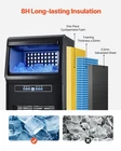Featu res : · Light Commercial Ice Maker: Our commercial ice maker is designed with 36 pcs ice trays and can produce up to 80 lbs of ice cubes per day (test conditions: 50-100.4°F/10-38°C ambient temperature). This compact ice maker has a generous storage capacity of 12 lbs and fits perfectly in your home, coffee shop, bar, beverage store, or restaurant · 6-8H Insulation: Our commercial ice maker machine takes insulation to a whole new level. It features a thickness ≥20mm cyclopentane insulation material and a quality shell for effectively isolating external heat. Even when the machine takes a break, your ice cubes stay frosty for a remarkable 6-8 hours · Automatic Self-Cleaning: Our ice maker has an auto self-cleaning function for easy cleaning. It ensures a hygienic ice-making environment. The ice cubes are clean and can be used directly to make cold drinks, preserve food, and more · Smart Control Panel: Our commercial ice maker features an LED digital display and mechanical buttons, giving you precise control over the ice-making process. Adjust ice thickness by increasing or decreasing ice-making time effortlessly. And that's not all - it also comes with a one-touch automatic cleaning function, making machine maintenance a breeze. You can monitor the status of the ice maker in real-time with the indicator light on the panel · Efficient & Quiet Ice Production: Our powerful compressor can produce ice cubes in as little as 12-15 minutes (depending on the ice thickness). What's more, it operates quietly, creating a comfortable environment without disrupting the peace.
