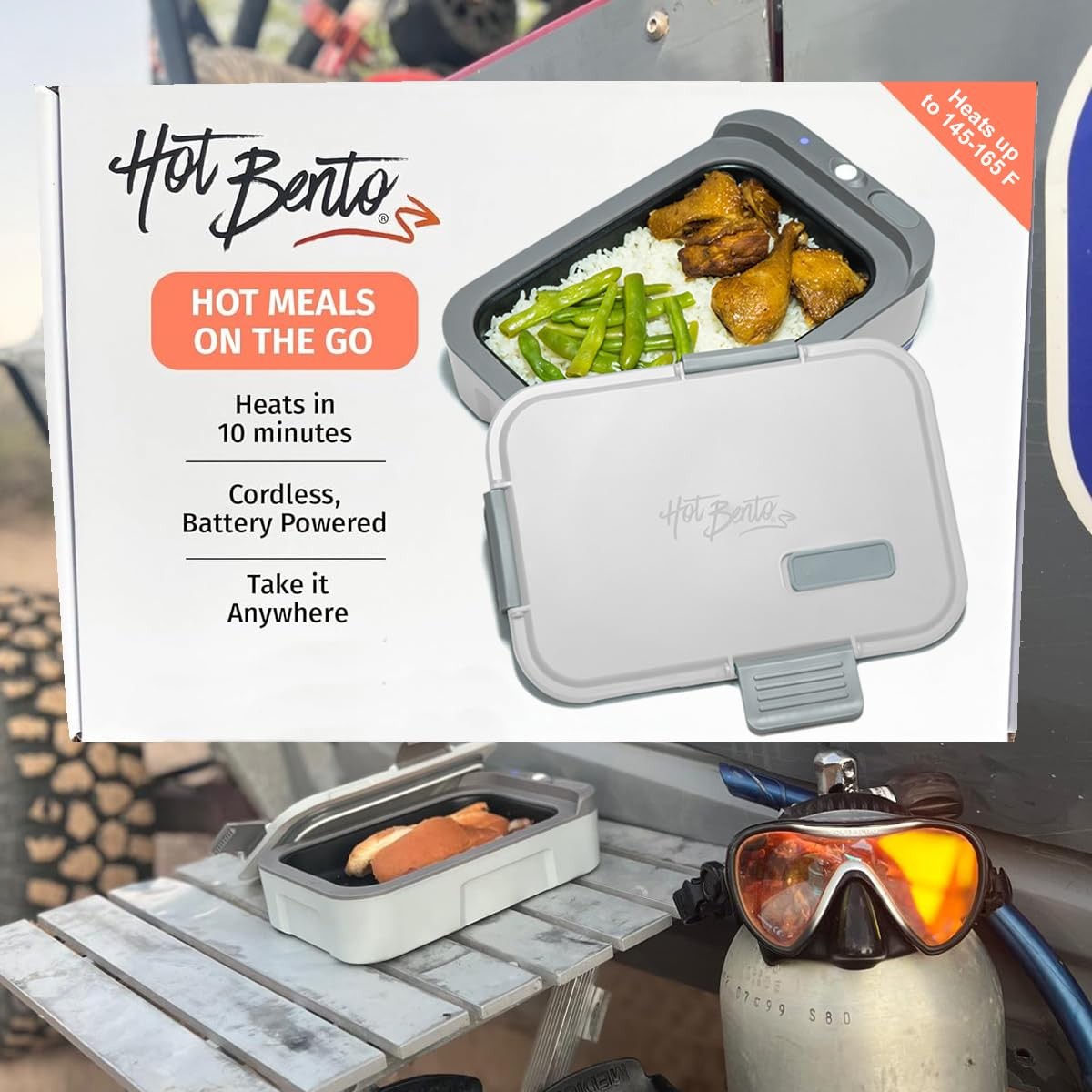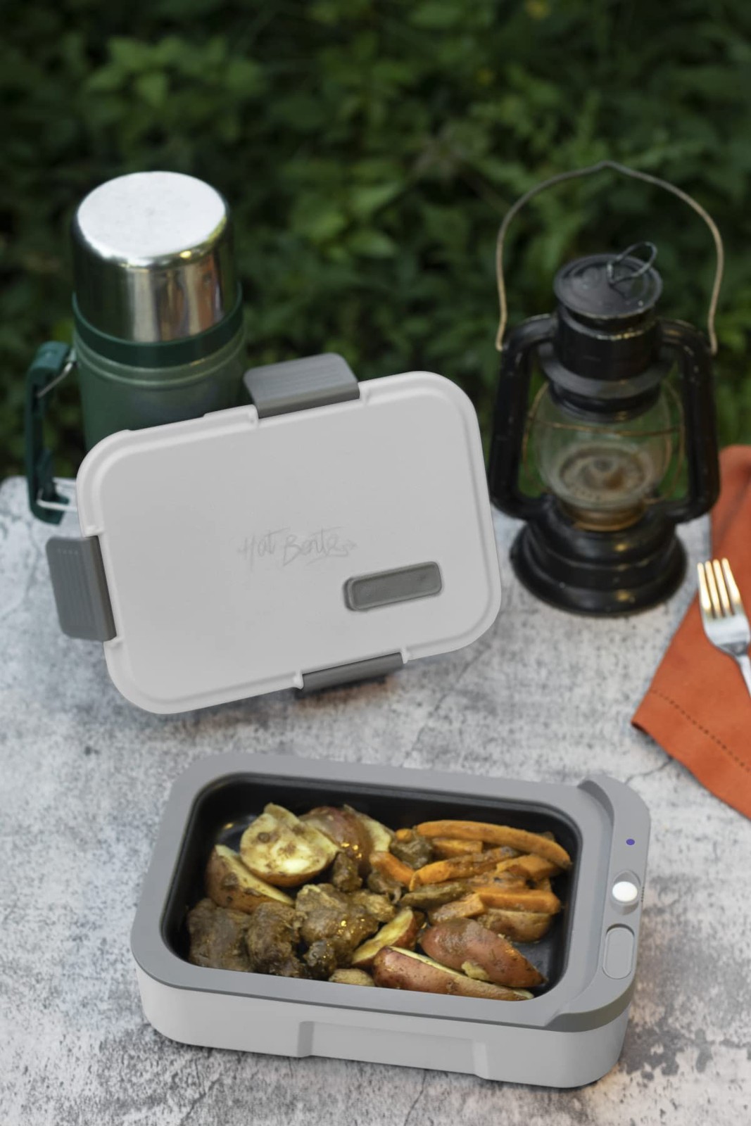 Enjoy the Warmth of a Home-Cooked Meal Anywhere. Take to work, outdoor recreation or travel and enjoy a delicious, heated meal on-the-go. applies recent developments in battery technology to improve the efficiency and speed of meal prep. Our proprietary lithium battery pack is rechargeable, safe and offers unparalleled on-demand convenience. Charge after each use (light on wall charger turns from red to green when fully charged). Do not immerse in water or liquids (not water proof). Wipe nonstick surface with cloth or sponge not steel wool or scrubby. Lid can be washed normally. Comes with a Full Year Limited Waranty. PRESSURE RELIEF VALVE: Equalizes pressure caused by steam and altitude to prevent vacuum and ensure easy opening. ON-DEMAND CONVENIENCE: Simply Double Press the power button to heat your meal to 145-165 °F in 10-15 minutes, depending on its contents CORDLESS, BATTERY POWERED: The ideal meal prep system for your busy lifestyle. offers unparalleled portability. Take it to work, travel, outdoor recreation and more. Upgraded electronics for added protection and water resistance. HEALTHY EATING: Meal prep with healthy ingredients that suit your taste. ENVIRONMENTALLY FRIENDLY: Reusable so that you can reduce the consumption of single use plastic. Hand wash and recharge after each use to reuse over and over again.