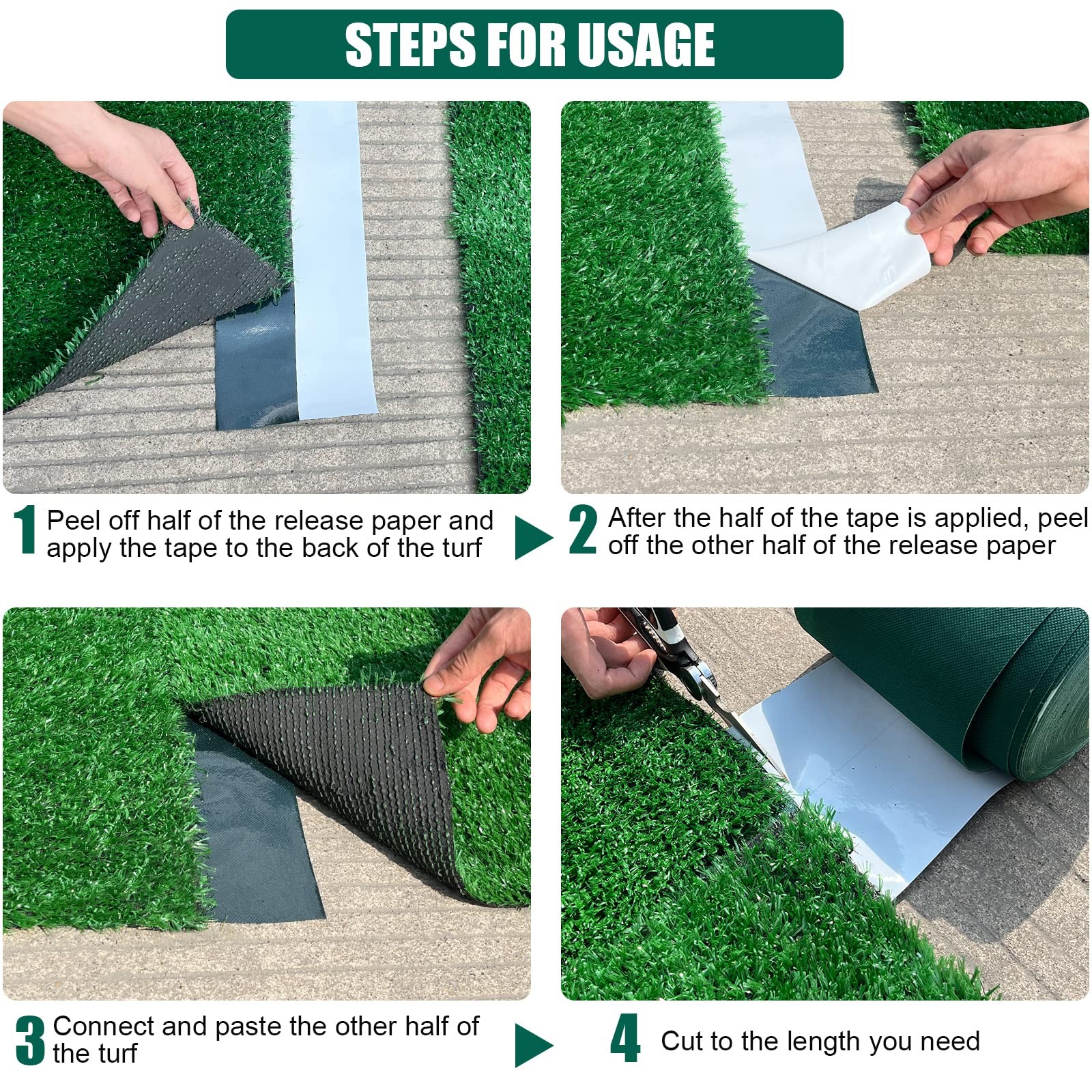 The artificial grass seam tape is made from strong and durable non-woven fabric, coated with extremely strong butyl adhesive, with superb adhesive power and waterproof. good for all coarse surface types DURABLE-MATERIAL: The artificial grass seam tape is made from strong and durable non-woven fabric, coated with extremely strong butyl adhesive, with superb adhesive power and waterproof. good for all coarse surface types. LONG-LASTING: Our artificial grass seam tape will easily withstand the elements. The grass seaming tape is UV resistant, weatherproof, and waterproof. You can trust that this turf tape will stay in place & keep your synthetic turf looking great! MULTIPURPOSE: This heavy-duty artificial turf seam tape is designed to connect different sections of synthetic turf. Ideal for both residential or commercial usage. Excellent addition to yards, terraces, villas, balconies, sporting areas, swimming pool areas, parks, patios, play areas, schools, public spaces, training pets, and outdoor lawns or areas of any type that you want to beautify! EASY TO USE: The turf seam tape is easy to use, peel of the release paper , convenient for you to connect two pieces of grass;You can also cut the tape to a suitable size to meet your needs NOTICE: Make sure no dust and no fingerprints on adhesive while applying. No water on the adhesive for the first 8 hours in order to create better curing and bonding. Vacuum regularly and spot clean.