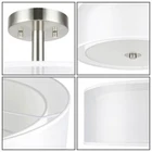 Drum semi flush ceiling light featuring a smooth brushed nickel finish and white fabric shade, frosted glass diffuser. Its double fabric shade creates a comfortable and brings all the modern elements. This elegant drum ceiling fixture is perfect for Kitchen, Bedroom, Living room, dining room, foyer or any living areas, of which will lend elegance to your space while surrounding it with relaxing ambient light. Semi flush mount ceiling light in brushed nickel finish. Dual fabric shade and frosted glass diffuser. Product Specification Dimension: W:16" x H:12" Finish: Brushed Nickel Shade Material: Double Fabric Shade + Frosted Glass Diffuser Shade Dimensions: (Outer) W:16" x H: 6" (Inner) W:13ʺ x H: 5ʺ Socket: E26 Socket 3x60W (Bulb not Included) Compatible with Variety of Bulbs This semi flush mount is suggest to use “A” Type Max. 3x60W bulbs for medium base (E26 socket) (incandescent bulb or equivalent CFL / LED bulbs) The fixture is dimmable when using the dimmable bulb with compatible dimmer switch. Bulb not Included. Semi Flush Ceiling Light Collection XB-SF1199-BN Dimension W: 18" x H: 12" Finish Brushed Nickel Shade Material Fabric Shade + Glass Diffuser Shade Diamension W:16-5/8" x H: 4-1/2" Socket E26 Wattage 3x60W (Bulb not Included) XB-SF1303-BN Dimension W:14" x H:9-3/4" Finish Brushed Nickel Shade Material Fabric Shade + Glass Diffuser Shade Diamension W:14" x H: 5-1/8" Socket E26 Wattage 3x60W (Bulb not Included) XB-SF1124-CH Dimension W:15" x H:12" Finish Chrome Shade Material Metal Shade + Glass Diffuser Shade Diamension (Outer) W:15" x H: 5" Socket E26 Wattage 3x60W (Bulb not Included) Terms of Sale Shipping Policy: We ship within 1-2 business day from receipt of payment. We do not change your shipping address by email. Please make sure your address is correct before checking out and making payment. Payment Policy We accept most major credit cards, including, but not limited to, Visa, Mastercard, American Express, or Discover card and PayPal. All major credit cards are accepted through secure payment processor eBay Payment. All payment must be made within 7 days of the end of the auction. Otherwise, an "Unpaid Item Dispute" will be filed with eBay. Return Policy If you have any questions about purchases or concerns on our products or accessories replacement, please feel free to contact us through eBay's Message Center. However, if a return is required, please kindly noted that all returns should be met with following conditions: All return requests must be within 30 days of receipt. Return item must be in original condition as received (brand new in sealed package / with tags). Refund of purchase price less original shipping will be issued. Return postage is buyer's responsibility. Original shipping is not refundable for products features free shipping unless we're found at fault. We won't be able to refund if products are found damaged or used. Thank you. Any accessories (such as: Glass) broken via transportation can be replaced for free within 30 days receipt. However, If exceed the valid date to contact us that need you to pay for the accessories (such as: Glass), thanks!