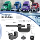 Fitment: Brake Anchor Pin Press works for class 6-8 transportation trucks and equipment, used with for Kenworth, for Peterbilt, for Freightliner, for Mack, for Volvo. Repairing a stamped spider may require the use of a punch and chisel to remove the bushing Features: 1) Perfect for complete service in minutes, with an included bushing removal adapter to safely and easily remove brake anchor pins and bushings for nearly all 16-1/2” S-Cam trailer and tractor “Q” brake systems 2) Brake anchor pin press uses a 7/8-inch hex driver and does not require any other special tools. High-performance design allows operators to service brake anchor pins and bushings while the hub and dust shield remain on the vehicle 3) Constructed from high-grade steel with black coated, features a rigid C-frame with a 10-ton capacity, rust and corrosion resistance, and hardened construction for high strength and impact resistance Package included: 16002 Brake Anchor Pin Press