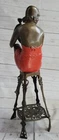 Condition : This sculpture is in perfect condition. Bronze Dimensions: Height 21.5" X Width 6.5" Weight:12 LBS Inventory:71EP266B12017 Step back in time to the Roaring 20s, the era of jazz, F. Scott Fitzgerald, and the fearless Flapper. These young women, known as the "New Breed," defied societal norms with their rebellious behaviors, including smoking, drinking, and yes, even driving. This exquisite bronze sculpture captures the spirit of these free-spirited individuals, making it a must-have for any aficionado of this iconic period. The Flapper is poised confidently on a black patina stool, embodying the era's spirit with her loose reddish patina short dress that drapes elegantly over her curves. Her gold beaded belt accentuates her waist, and a bow at the back adds a touch of flair to her attire. This sculpture impeccably portrays her relaxed demeanor as she rests a hand on her pulled-in knee, while her other leg swings down, revealing her voluptuous thighs in a rich brown patina. Her black bobbed hair peeks from beneath her fitted cloche hat, adding to her allure. This 100% handmade bronze sculpture, meticulously detailed and crafted using the time-honored "Lost Wax Method," is a true work of art. It proudly bears the signature of the artist J.E. Mir, a testament to the skill and dedication invested in this piece. Whether you're a fan of the 1920s, jazz music, or simply appreciate the beauty of this bygone era, this sculpture is a captivating and evocative addition to your collection or living space. Gorgeous Champagne Lady Sculpture by J.E Mir Brown Red Patina Figurine Sale Video will open in a new window Using the eBay App? Paste link into a browser window: [isdntekvideo]