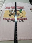 This is a medium-sized, crew neck t-shirt made of cotton knit fabric with a classic, funny, and military theme. The shirt features a graphic print of the Edwards Air Force Base logo and is lightweight with easy care features, making it suitable for all seasons. The shirt is machine washable and has short sleeves, making it perfect for casual wear.