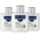 VITAMIN E AND CHAMOMILE ENRICHED: Enriched with Vitamin E, Pro-Vitamin B5 and Chamomile extract, this aftershave for men helps calm and hydrate sensitive skin SOOTHES SENSITIVE SKIN: Soothes and moisturizes to protect sensitive skin from dryness after shaving QUICK ABSORPTION AND LIGHTWEIGHT FEEL: This lightweight aftershave balm for men is fast-absorbing, non-greasy, and has been dermatologically-tested on men with sensitive skin COMBATS 5 SIGNS OF SHAVE IRRITATION: Fights five signs of shaving irritation, including burning, micro cuts, dryness, tightness and stubble itch PERFECT FATHER'S DAY GIFTS: Treat any dad in your life to this NIVEA MEN Sensitive Soothing Post Shave Balm pack (3 x 3.3 fluid ounce bottles) ? the perfect skincare gifts for dad this Father's Day NIVEA MEN Sensitive Soothing Post Shave Balm is a proven defense for your skin. This extra gentle post shaving balm is specially formulated for men with sensitive skin, to help moisturize and protect your skin from dryness caused by/after shaving. NIVEA Sensitive Post Shave Balm for Men is enriched with Vitamin E, Pro-Vitamin B5 and soothing natural Chamomile extract to help calm and hydrate sensitive skin. A lightweight, fast-absorbing, non-sticky and non-greasy formula helps provide your skin with long-lasting moisturization for the ultimate skin comfort. This mens aftershave balm fights the five signs of shave irritation: burning, micro cuts, dryness, tightness and stubble itch. Free of parabens, dyes and drying alcohols, this after shave balm is suitable for daily use. This shaving balm is a key part of a skin and beard care routine and pairs well with NIVEA MEN Sensitive Shave Gel, Sensitive Face Wash and Sensitive Face Lotion with Broad Spectrum SPF 15 Sunscreen as part of a daily skincare regimen. To use, apply this aftershave balm for men liberally all over the face, beard and neck area after shaving or cleansing. With daily use of this after shave for men, skin feels comfortable, smooth, resilient and healthy-looking.