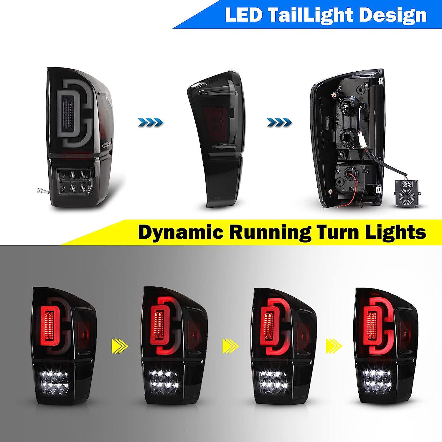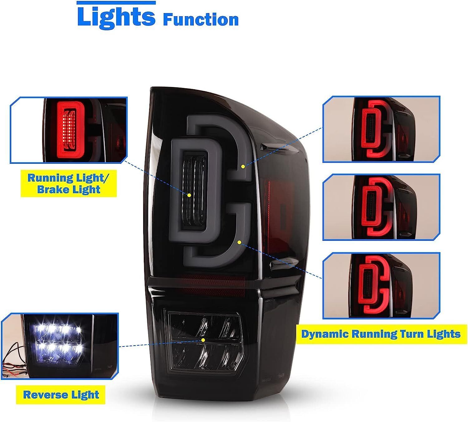 Head Lights Tail Lights Fog Lights Turn Signal Bumper Fender Flare Inner Fender Refrigerator Other Items for sale Head Lights Tail Lights Fog Lights Turn Signal Bumper Fender Flare Inner Fender Liners Portable Refrigerator For 2016-2023 Toyota Tacoma Sequential Turn Signal LED Tail Lights Black Smoke Lens Rear Brake Lamps Pair 🔥🔥🔥 Hot Sale Clear Lens: https://www.ebay.com/itm/403519498021 Red Lens: https://www.ebay.com/itm/403516238120 Specification: Color: Black Housing / Smoke Lens Light Source: LED, Halogen (backup lights use the stock bulbs or the original lights of car) Brake Light: LED Turn Signal Light: LED Wiring Harness: Not Included (Plug & Play) Replaces Original (OEM) Part #: L:81560-04170; R:81550-04170 L:81560-04180; R:81550-04180 L:81560-04190; R:81550-04190 L:81560-04200; R:81550-04200 L:81560-04181; R:81550-04181 L:81560-04181; R:81550-04181 L:81560-04230; R:81550-04230 L:81560-04210; R:81550-04210 L:81560-04220; R:81550-04220 Partslink: L: TO2800197; R: TO2801197 L: TO2800198; R: TO2801198 L: TO2801099; R: TO2801199 L: TO2800201; R: TO2801201 L: TO2800203; R: TO2801203 L: TO2800203; R: TO2801203 L: TO2800207; R: TO2801207 L: TO2800206; R: TO2801206 L: TO2800205; R: TO2801205 Fitment: For 2016-2023 Toyota Tacoma Package Include: 1 Pair of Tail Light (left and right side) 2 * Resistors Installation Video Winjet’s tail lights install for 2016-2023 Toyota Tacoma (CHRNG-0685-GBC) Video will open in a new window Using the eBay App? Paste link into a browser window: [isdntekvideo] Payment Shipping Return About us Contact us Payment Appreciated for the prompt payment, Contact us if bid by mistake, system open unpaid item automatically. Payment must be complete within 3 days from the date you purchase or after the end of auction. Items unpaid within 3 days of the auction end will be forfeited. We reserve the right of cancel the order and re-selling the items. Shipping All shipment will ship by UPS or USPS . All items will be ship within 1 working days , and we will ship out all orders as soon as possible after payment verified, please allow up to 1-4 business days for delivery. CANADA & International customers please note: your government might charge a duty tax (brokerage fees). We do not responsible for any custom duty or import tax. Why Choose the US Stock? 1. Us Local Shipping, No Extra Customs Cost to the US. 2. Fast Delivery: 1-4 Working days Delivery. 3. Best After-Sales Service!!! Return The buyer is responsible for all return shipping including a result of customer error or defective item. 1) If you received an incorrect, damaged, defective, or item not as described, contact us for full refund or replacement on our cost. 2) If you want to return the item, please contact us within 60 days after package received. Return products must also be in its original condition: including box, packaging and all other accessories. About us We are the best auto parts, we have been pursuing excellence, continuous exploration as the slogan, let customer satisfaction is our purpose! We adhere to the United States local delivery, one year warranty! Welcome! Contact us How Should You Contact us? Please Read The Item Description And See if The item Fits Your Vehicle Exactly. If You Found Any questions, Feel Free to email us by "Ask a question" Our Office Hours Are Monday - Friday 8:00am - 5:00pm PST / 11:00am - 8:000pm ET, We Do Not Answer Any E-Mails On Weekend, And We Will Reply All E-Mails In The Order It Was Receive. All E-Mail Take Us Around 24 Hours To Respond To Any E-Mail. We Are Close During The Weekends And We Do Not Answer Any E-Mails During That Time.